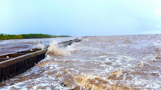 Ảnh hưởng của bão số 12 gây sóng to khu vực ven biển tỉnh Cà Mau. (Ảnh: Báo Nhân dân)