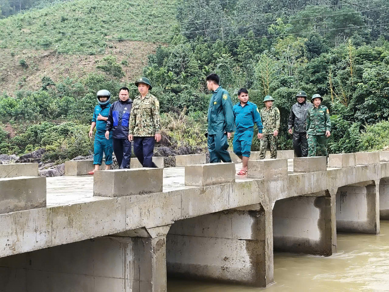 Kiểm tra các điểm xung yếu có nguy cơ sạt lở, lũ quét khi xảy ra mưa lớn. Ảnh: Bình An