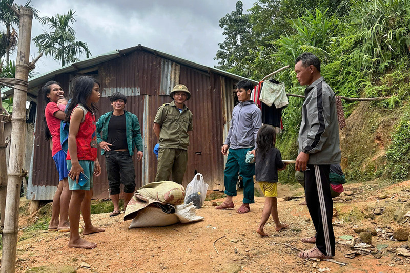 Tại thôn Aur, khu vực biệt lập trong rừng phòng hộ, Công an xã duy trì liên lạc thường xuyên và hướng dẫn người dân chủ động dự trữ lương thực, nước sạch và các biện pháp đảm bảo an toàn trong trường hợp mưa lũ chia cắt.