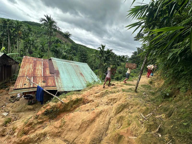 Xã Trà Đốc chủ động sơ tán người dân từ các điểm có nguy cơ sạt lở. Ảnh: Bình An