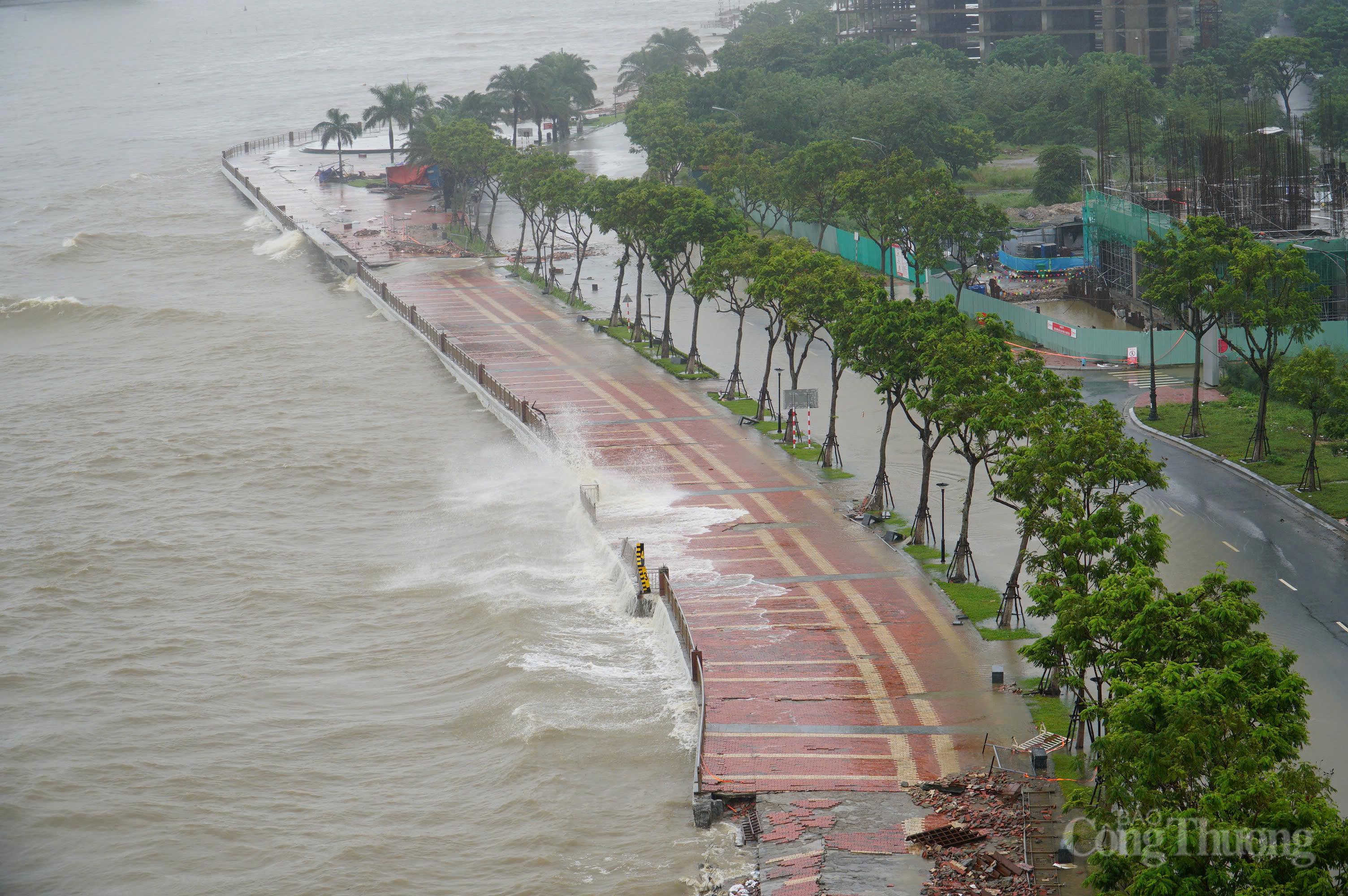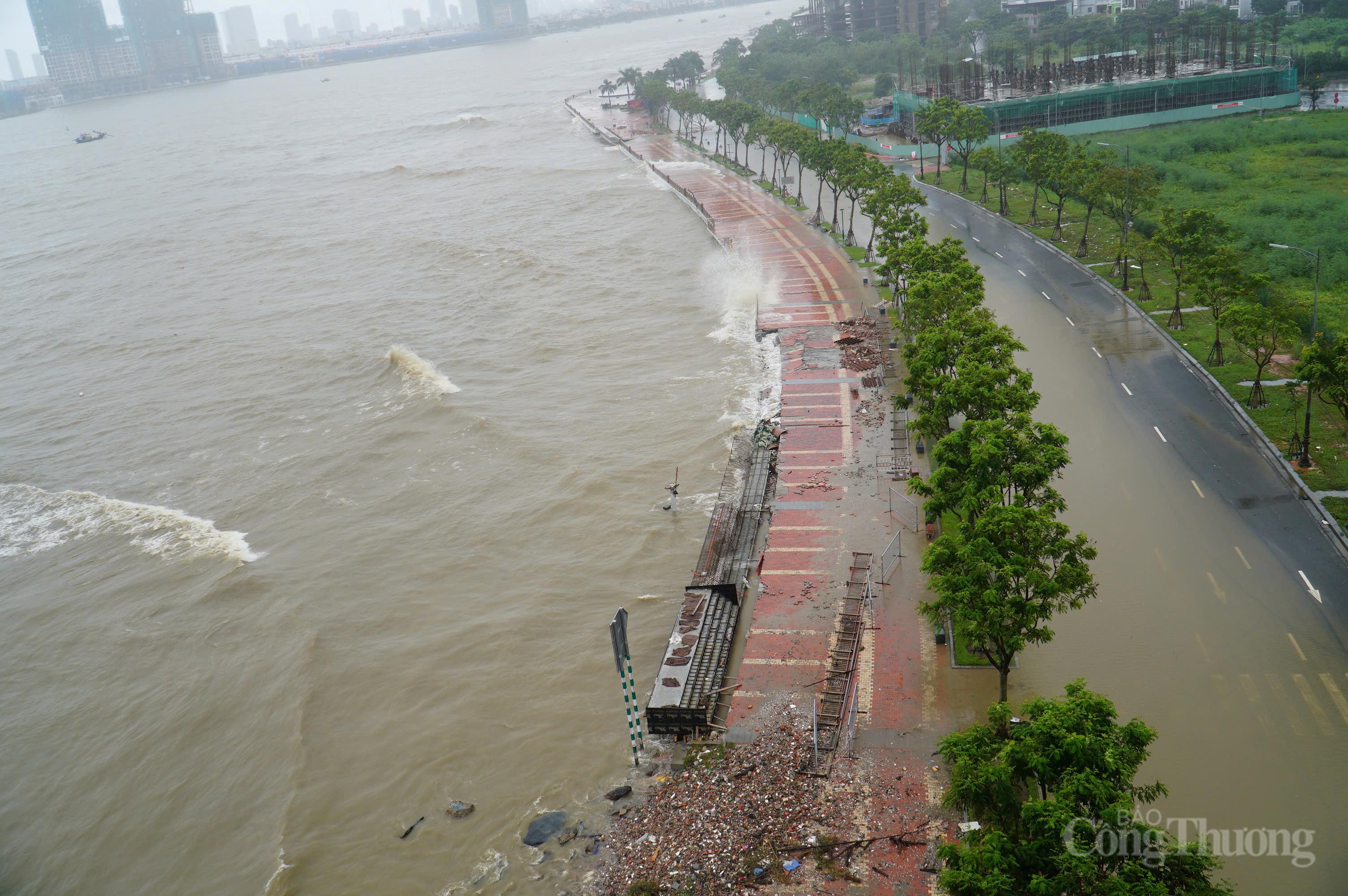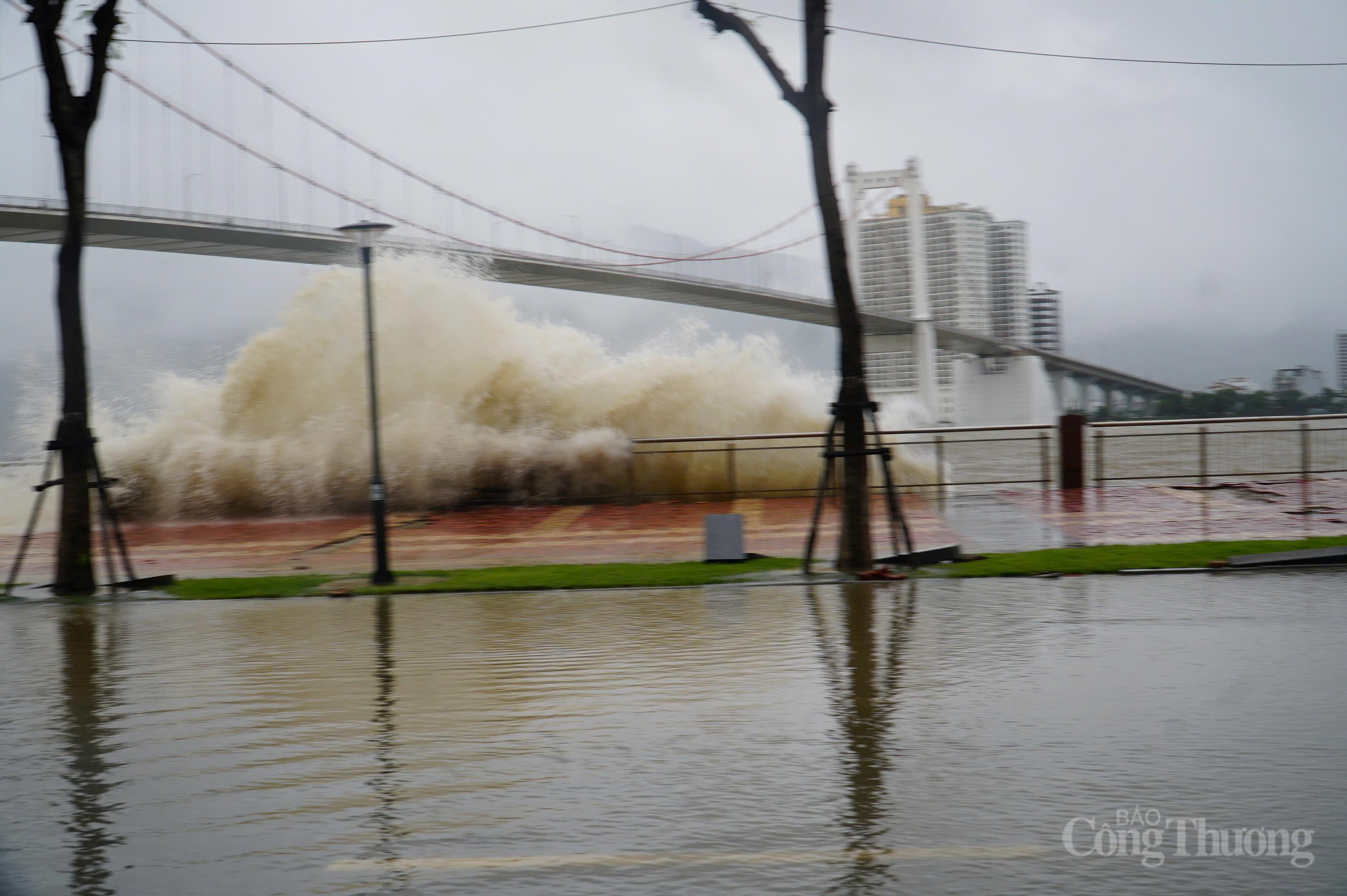 Sóng đánh mạnh vào vỉa hè đường Như Nguyệt (phường Hải Châu, TP. Đà Nẵng)