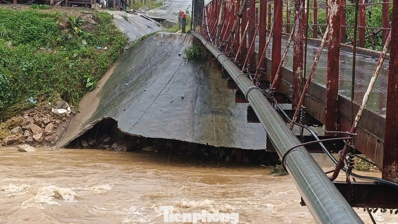 Cầu treo đi nóc Ông Dũng (xã Trà Giáp) bị sụp lún.