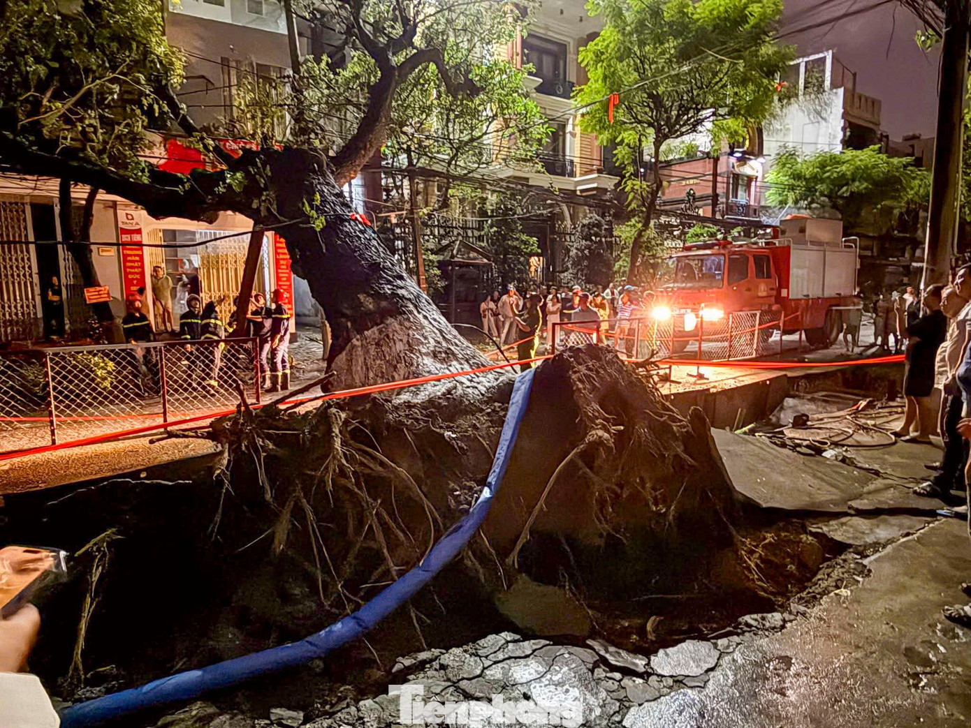 "Lúc đó, cả nhà tôi đang nằm nghỉ thì nghe tiếng động mạnh ở ngoài đường nên vội chạy ra xem. Khi ra đến nơi, mọi người thấy cây lớn trước nhà đã bật gốc, đổ chắn ngang đường. Nhiều dây điện phía trên cũng bị kéo theo nên cả khu vực bị mất điện. Rất may sự việc không gây thiệt hại cho người đi đường”, ông Trần Nhật, người dân sống tại khu vực, cho biết.