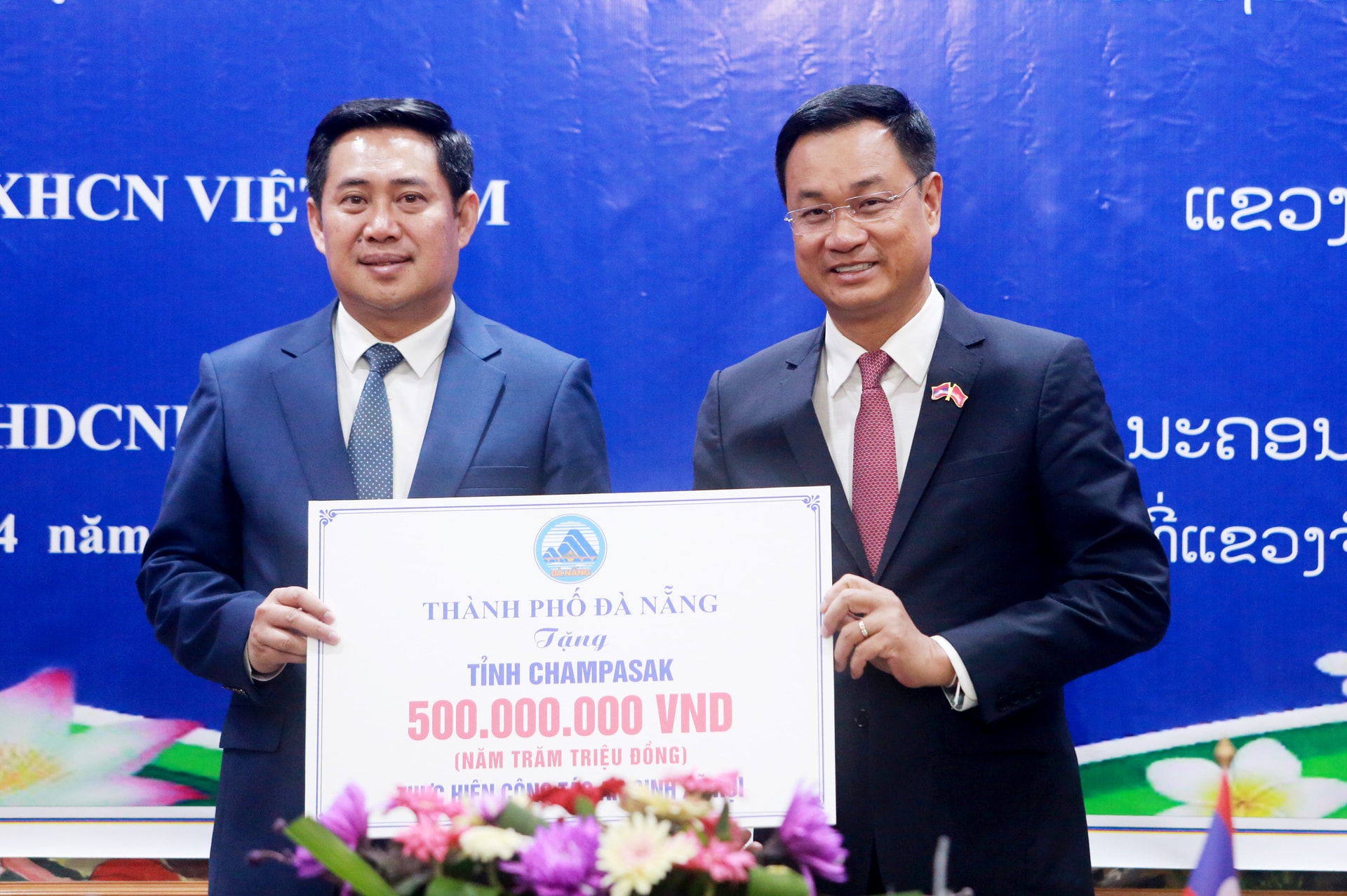 Dịp này, thành phố Đà Nẵng trao tặng 500 triệu đồng cho chính quyền tỉnh Champasak thực hiện công tác an sinh xã hội.