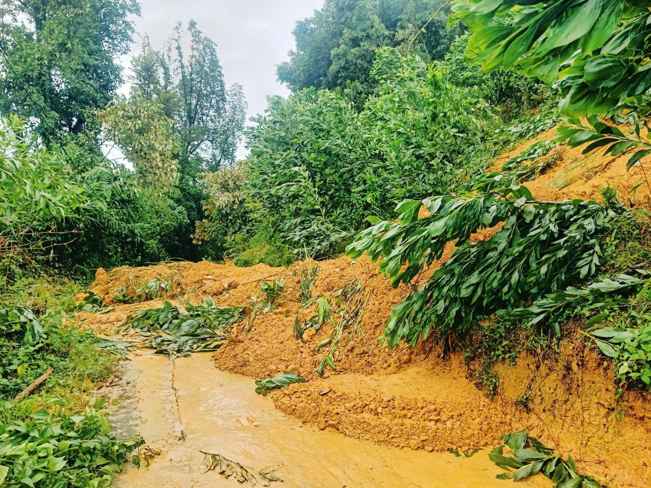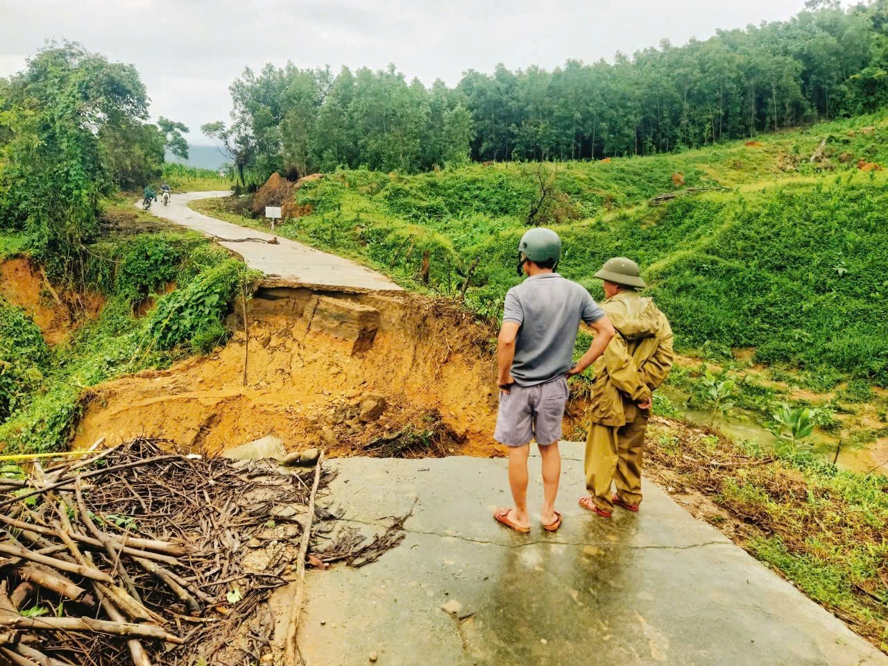 Một số tuyến đường bị chia cắt hoàn toàn. Lực lượng tại chỗ túc trực 24/24, khoanh vùng, cắm biển cảnh báo nguy hiểm và sẵn sàng phương án ứng phó khi có tình huống phát sinh.