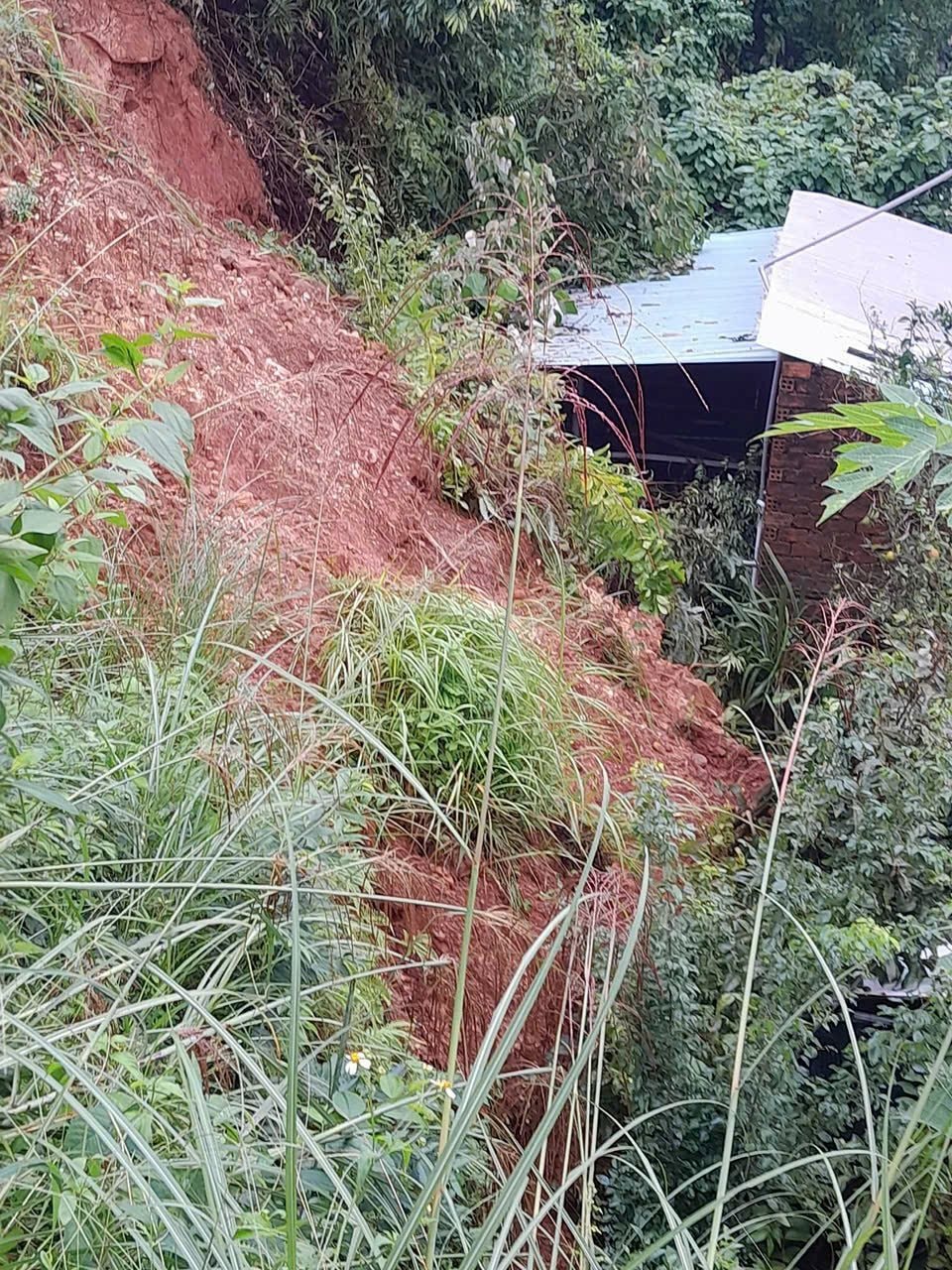 Trong khi đó, tại khu dân cư thôn Phú Nhơn, đất đá từ sườn đồi bất ngờ sạt xuống, tràn vào khu vực bếp của nhiều hộ dân, ảnh hưởng trực tiếp đến 6 hộ. Ngay sau khi nắm thông tin, chính quyền xã đã tổ chức di dời toàn bộ các hộ ra khỏi vùng nguy hiểm, bố trí tạm trú tại nhà văn hóa thôn để đảm bảo an toàn tính mạng và tài sản.