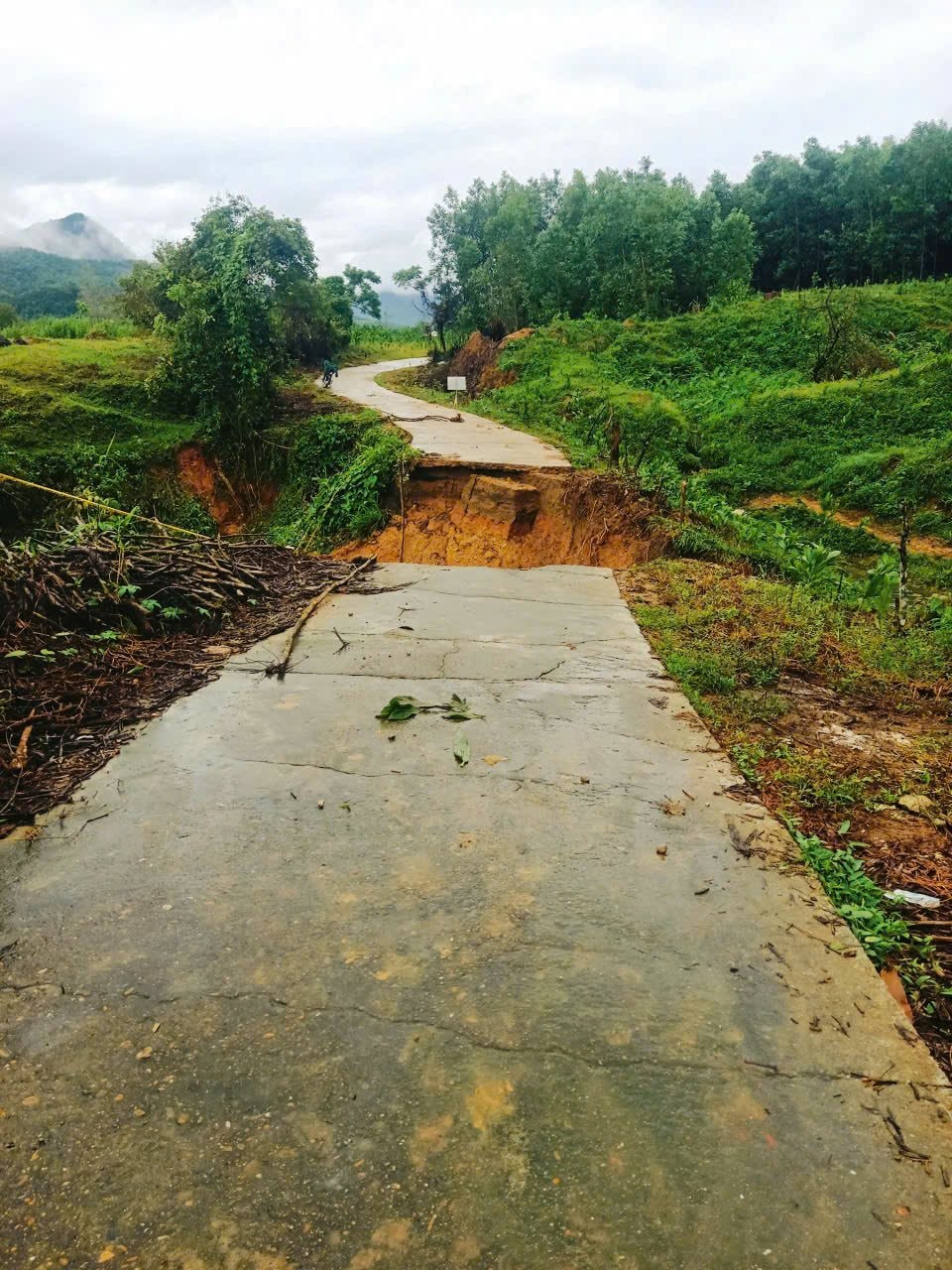 Tại tuyến đường ĐH5, đoạn từ cầu Trà Linh đi đường Trường Sơn Đông, vị trí qua cống Đồng Xạ bị đứt gãy hoàn toàn, chia cắt lưu thông giữa các thôn. Xe máy và ô tô đều không thể qua lại. Chính quyền xã Hiệp Đức đã báo cáo UBND TP. Đà Nẵng cùng Sở Tài chính để xem xét, hỗ trợ kinh phí khắc phục khẩn cấp tuyến đường huyết mạch này.