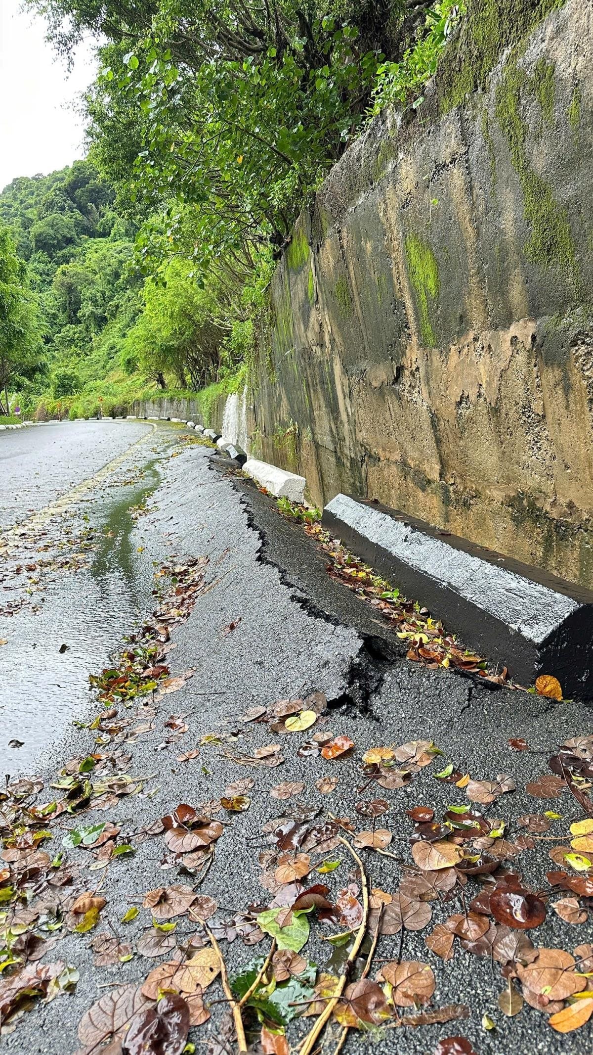Theo phản ánh, khu vực taluy tại đây đã xuất hiện nhiều vết nứt lớn, tiềm ẩn nguy cơ đất đá sạt tràn xuống lòng đường nếu mưa lớn tiếp diễn. Trước tình hình đó, phía InterCon đã chủ động dùng biển cảnh báo của Ban Quản lý bán đảo Sơn Trà để cắm tạm tại vị trí nguy hiểm, đồng thời căng dây để hạn chế người dân và du khách tiếp cận khu vực này.