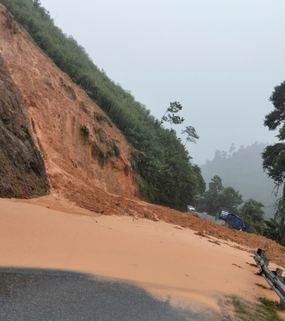 Sạt lở tại khu vực từ ngã 3 Trà Giác cũ đến trung tâm xã Nam Trà My trong sáng 26-10