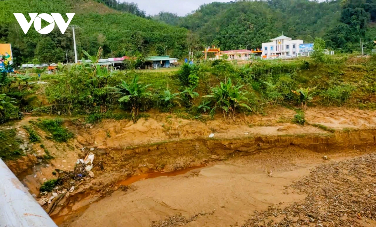 Bờ sông Châ Lang, đoạn qua trung tâm hành chính xã A Vương, TP. Đà Nẵng bị sạt lở nghiêm trọng
