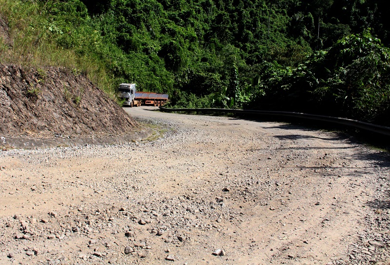Thời gian qua, lưu lượng xe tải nặng vận chuyển hàng hóa từ Lào về Việt Nam qua cửa khẩu quốc tế Nam Giang tăng cao, khiến tuyến quốc lộ 14D xuống cấp nghiêm trọng.