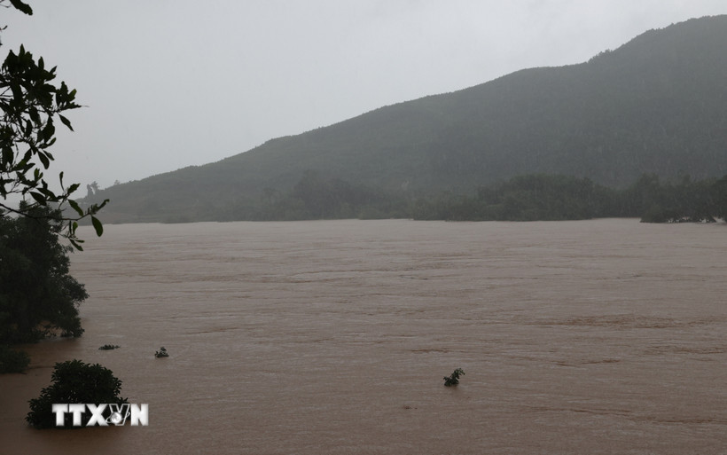 Nước sông Thu Bồn dâng cao. (Ảnh: Anh Dũng/TTXVN)