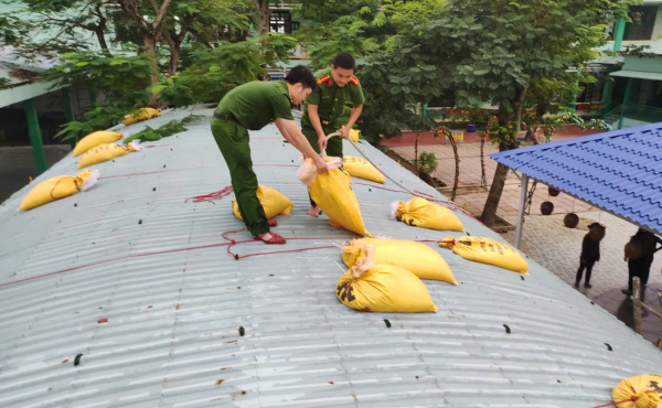 Công an các địa phương của TP Đà Nẵng hỗ trợ chằng chống nhà cửa, di dời người dân đến nơi an toàn, ứng trực 24/24 giờ trên toàn địa bàn sẵn sàng các phương án ứng phó với bão số 13.