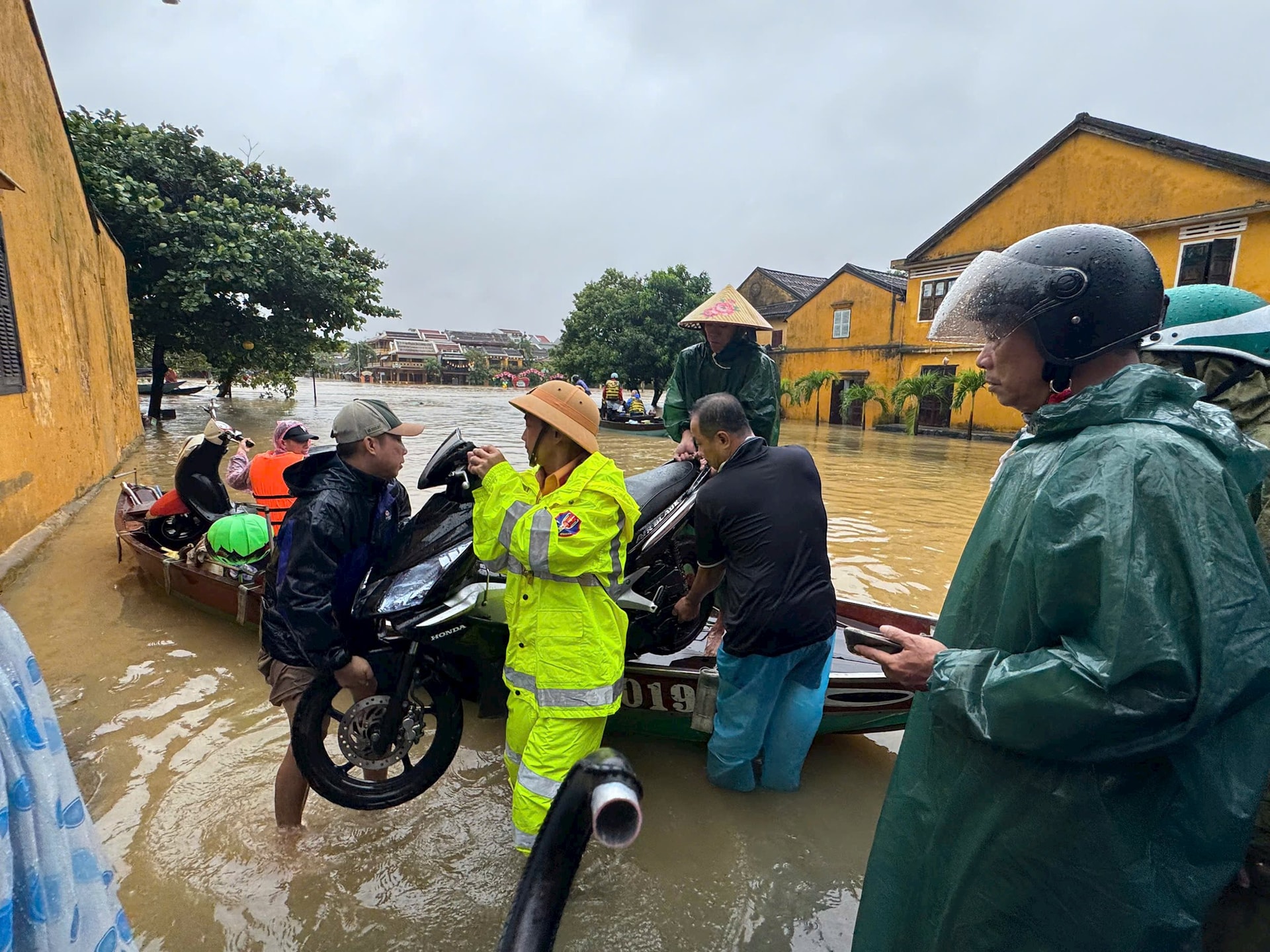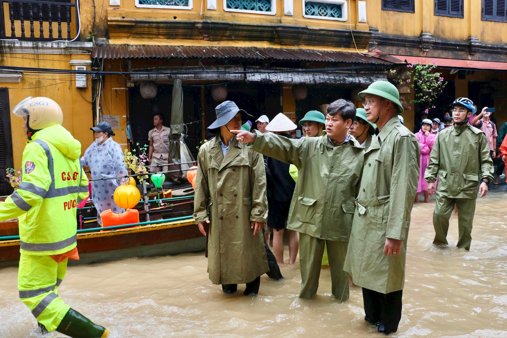 Trước diễn biến phức tạp của mưa lũ, lãnh đạo thành phố đã trực tiếp kiểm tra, chỉ đạo công tác ứng phó. Sáng cùng ngày, Bí thư Thành ủy Lê Ngọc Quang và Phó Chủ tịch UBND TP. Hồ Quang Bửu đã đến kiểm tra tình hình ngập lụt, sạt lở tại các phường Hội An Tây, Hội An Đông và khu vực trung tâm Hội An. Chủ tịch UBND thành phố Phạm Đức Ấn cũng có mặt tại xã Việt An, Sơn Cẩm Hà để kiểm tra công tác di dời, bảo đảm an toàn cho người dân.