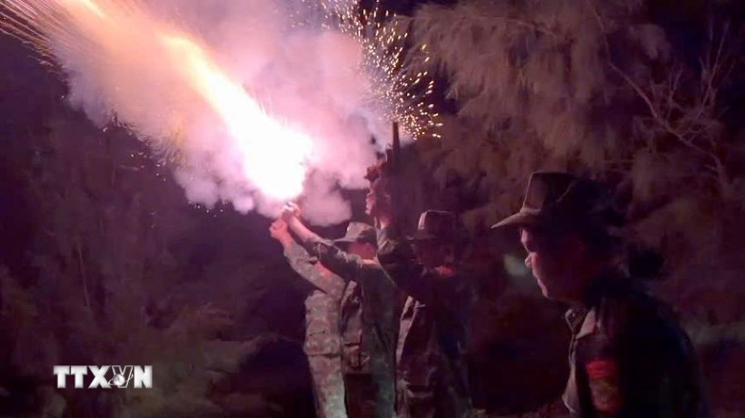 Đồn biên phòng cửa khẩu cảng Kỳ Hà bắn pháo hiệu để kêu gọi tàu thuyền vào nơi trú ẩn an toàn. (Ảnh: Đoàn Hữu Trung/TTXVN)