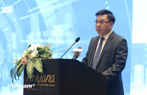 Ông Lê Hoàng Tài, Phó Cục trưởng Cục Xúc tiến thương mại, Bộ Công thương phát biểu tại hội nghị. (Ảnh: PV/Vietnam+)