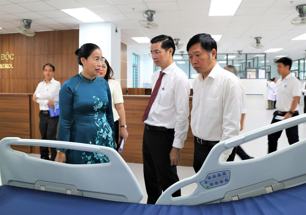 Phó Chủ tịch UBND TP Đà Nẵng Nguyễn Thị Anh Thi (bên trái) thăm Khu điều trị kỹ thuật cao, thuộc BVĐK Quảng Nam. Ảnh: Chí Đại.