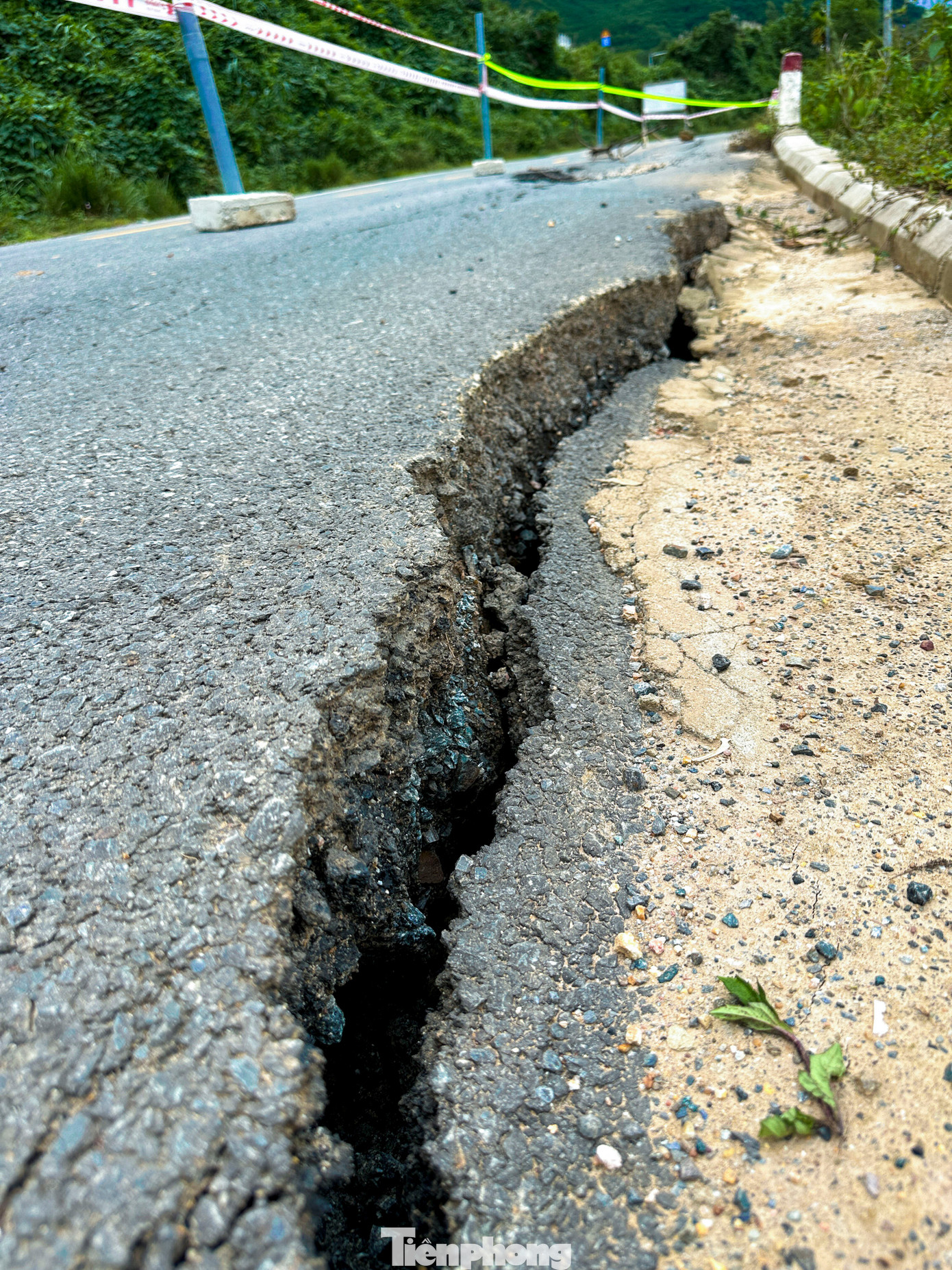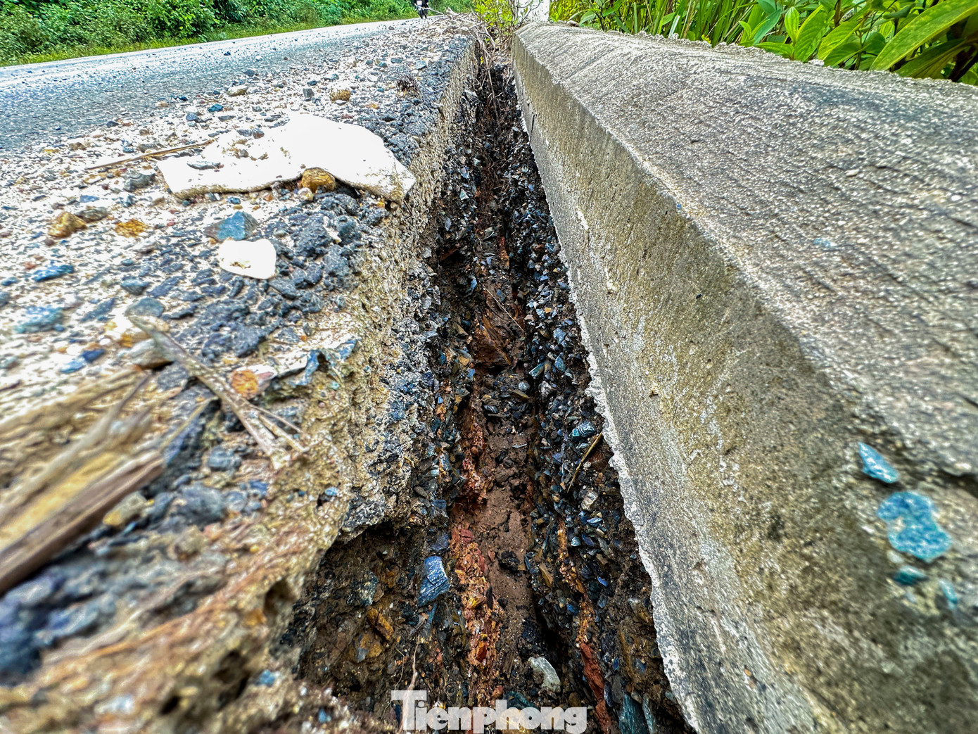 Một số vị trí vết nứt lớn kéo dài, có nguy cơ sạt lở nếu mưa tiếp diễn.