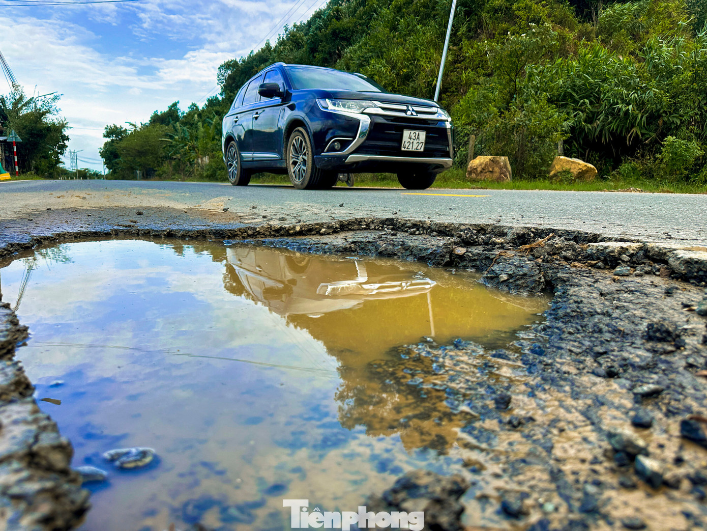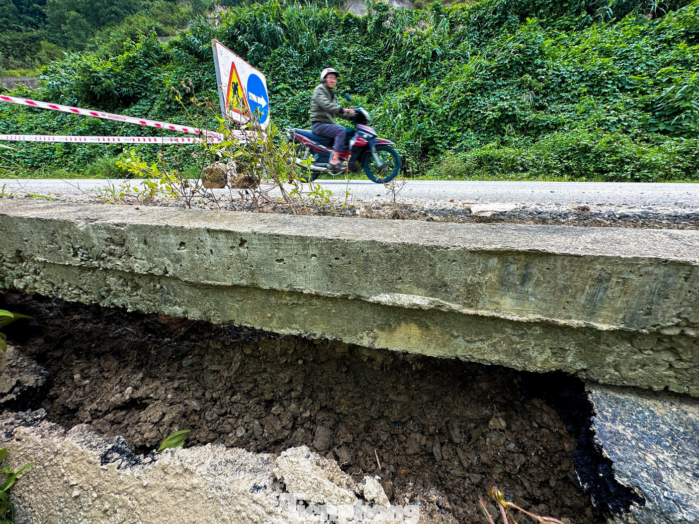 “Do những đợt mưa lũ vừa qua khiến đoạn đường này bị sụt lún nghiêm trọng, mặt đường nứt toát, có chỗ lún sâu tạo thành rãnh lớn, đi lại rất nguy hiểm”, chị Thanh Huyền, người thường xuyên qua tuyến này cho biết.