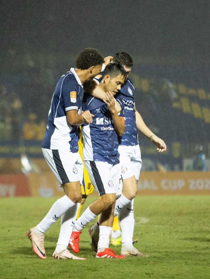 Dù vậy, trong trận đấu thuộc vòng 16 đội Cúp quốc gia, Đà Nẵng đã thể hiện tinh thần thi đấu rất ấn tượng. Đội khách sớm gây bất ngờ khi Anh Tuấn ghi bàn mở tỷ số ngay phút thứ 4 sau pha phối hợp sắc nét. Đà Nẵng tiếp tục chơi chủ động và đến phút 27, David Boris tung đường kiến tạo chuẩn xác để Makaric dứt điểm nâng tỷ số lên 2-0, đặt SLNA vào thế rượt đuổi đầy khó khăn.
