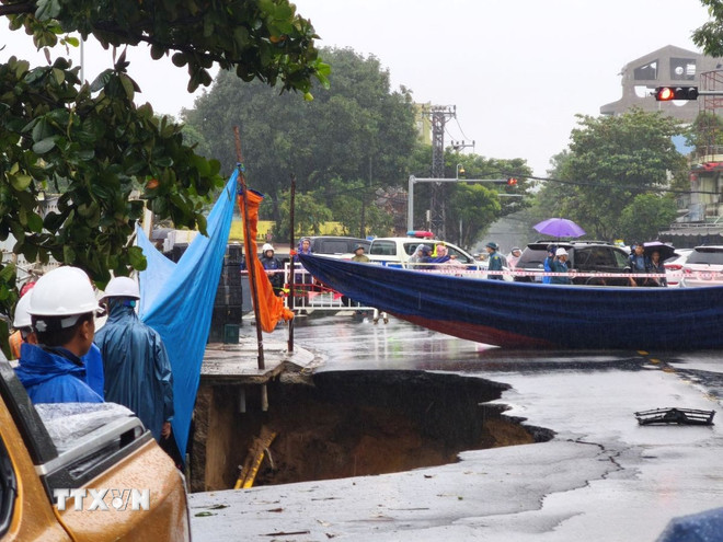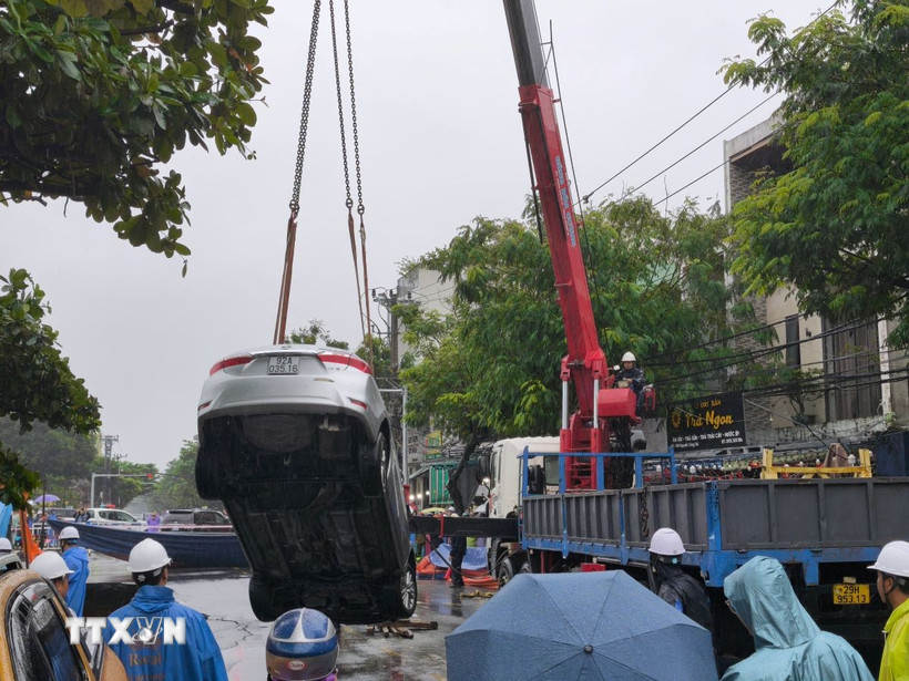 Đến 16 giờ cùng ngày, lực lượng chức năng đã cẩu các xe ôtô ở dưới hố lên để tiếp tục xử lý, đoạn đường xung quanh hố đã bị rào lại để đảm bảo an ninh./.