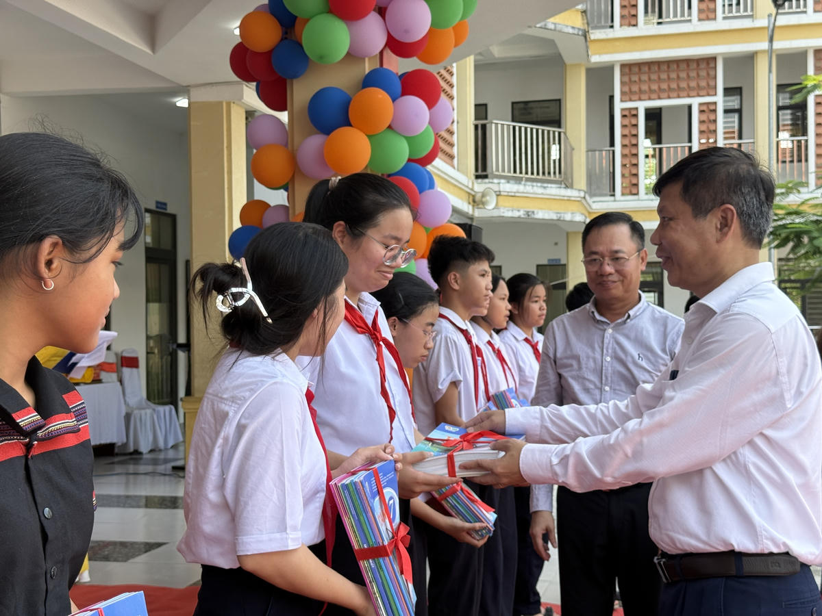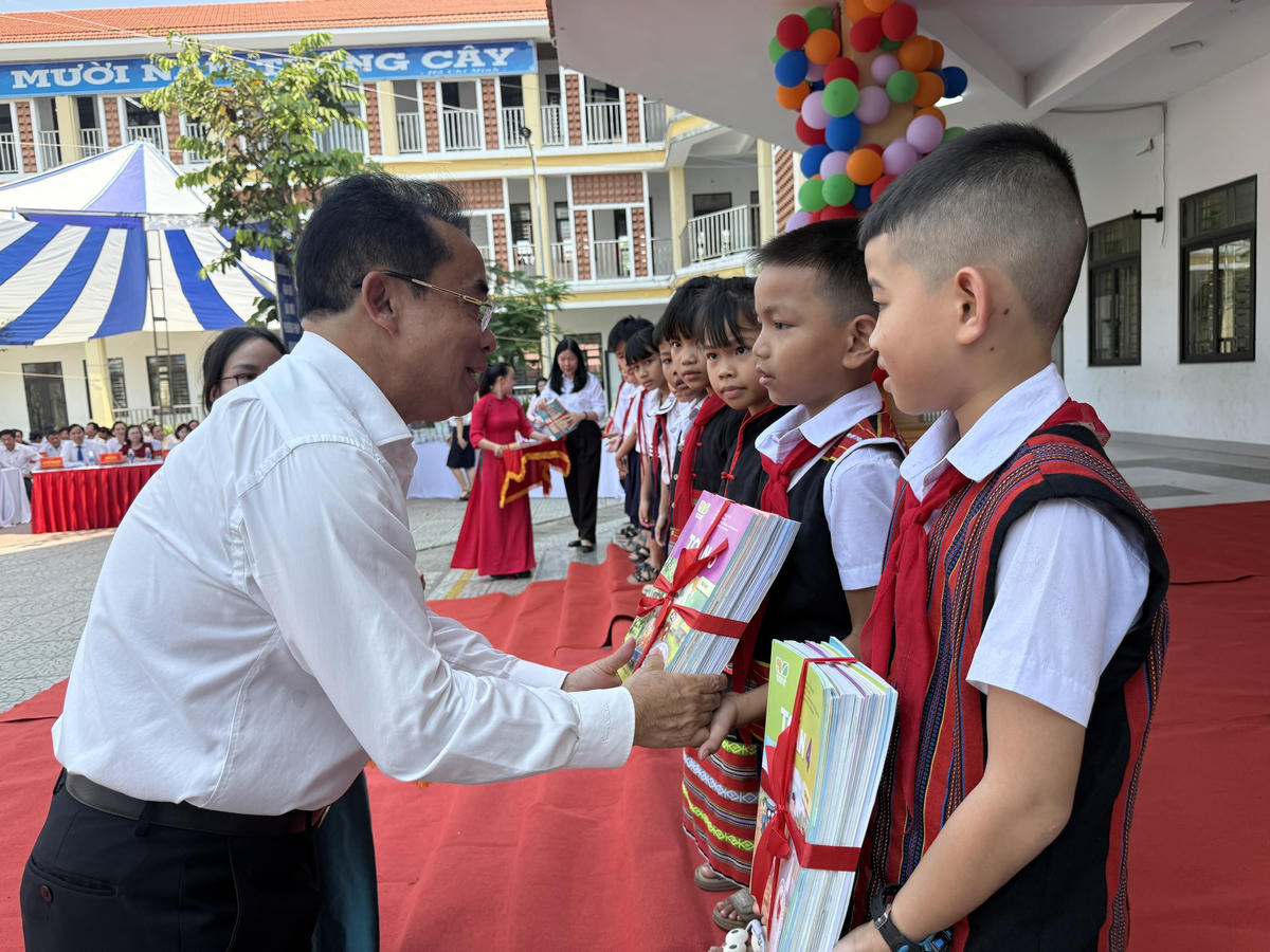 Lễ công bố chính sách cung cấp sách giáo khoa miễn phí cho học sinh diễn ra tại Trường Tiểu học An Phước, một trong những ngôi trường có lịch sử lâu đời nhất của xứ Quảng và cả nước; trường dạy chữ Quốc ngữ đầu tiên ở Quảng Nam – Đà Nẵng.
