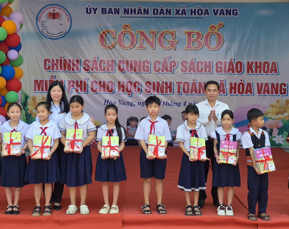 Ngày 10.4, UBND xã Hòa Vang (TP. Đà Nẵng) công bố triển khai chính sách cung cấp sách giáo khoa miễn phí cho học sinh trên toàn địa bàn. Đây được xem là bước đi cụ thể nhằm hiện thực hóa Nghị quyết số 71 của Bộ Chính trị về đột phá phát triển giáo dục và đào tạo.