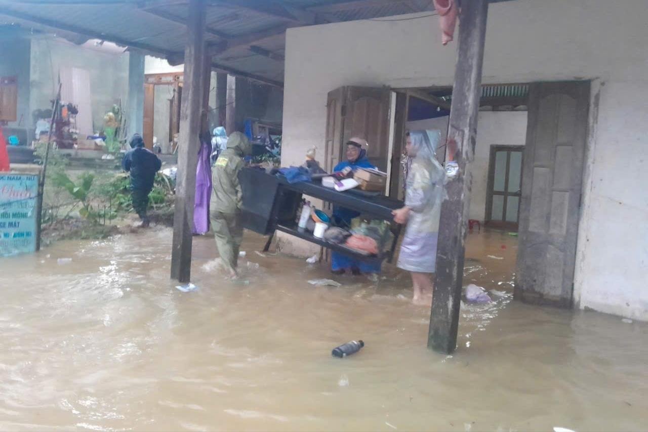 Ở xã Trà My, mưa lớn gây ngập sâu và sạt lở nhiều tuyến đường, 59 hộ với hơn 200 người dân đã được đưa đến nhà văn hóa thôn hoặc các điểm cao an toàn. Lực lượng dân quân, công an xã trực gác tại các điểm ngập, hướng dẫn người dân không qua lại khu vực nguy hiểm.