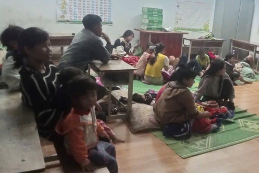 Người dân được sơ tán đến trụ sở kiên cố để tránh lũ tại miền núi TP Đà Nẵng.