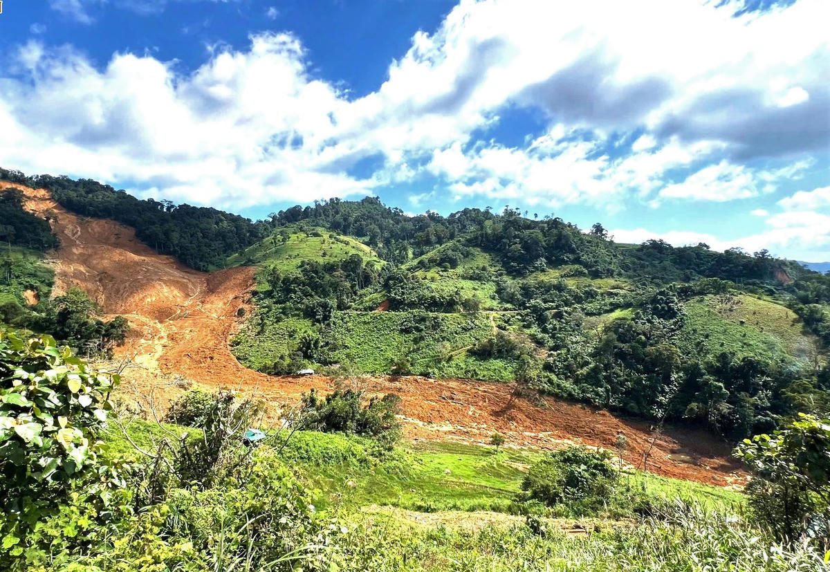 Hiện trường nơi xảy ra vụ sạt lở núi khiến 3 người mất tích. Clip. CV.