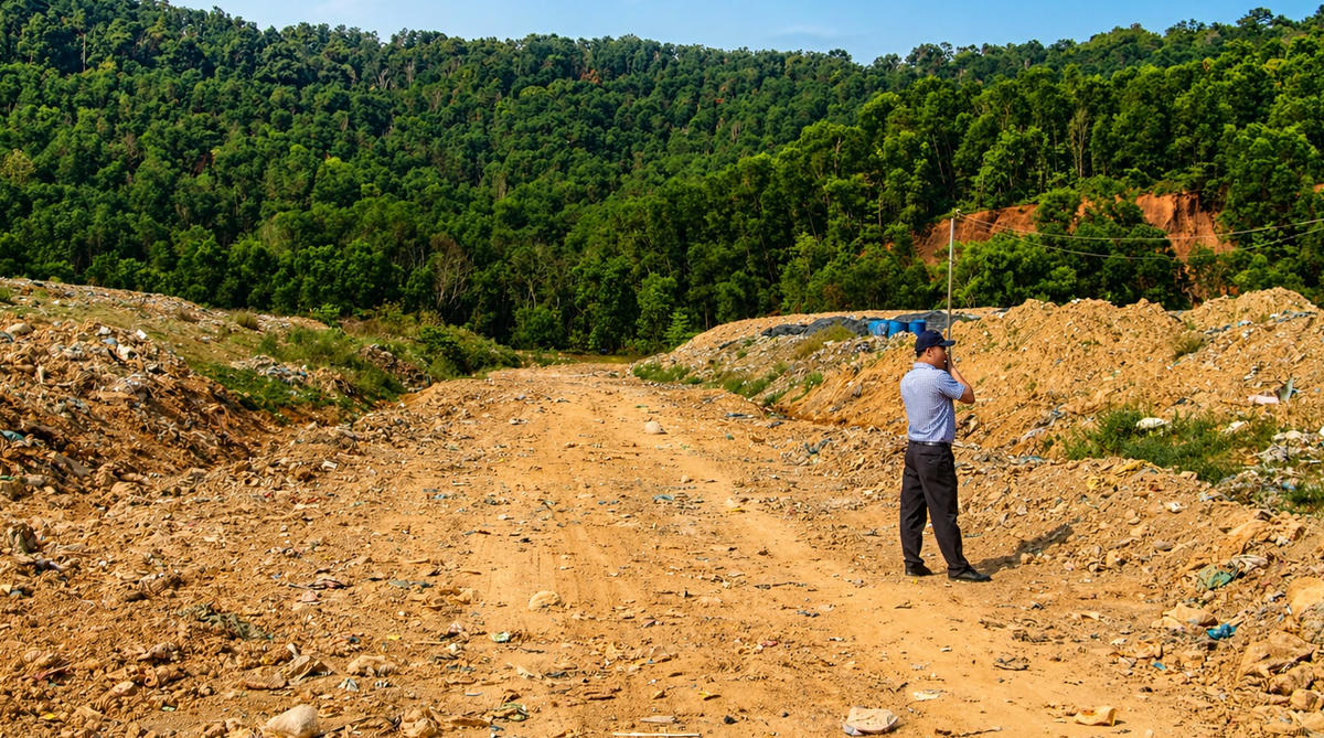 Ông Trần Nam Hưng, Phó Chủ tịch UBND TP Đà Nẵng kiểm tra, chỉ đạo tại bãi rác Tam Xuân. Ảnh: Tấn Thành.