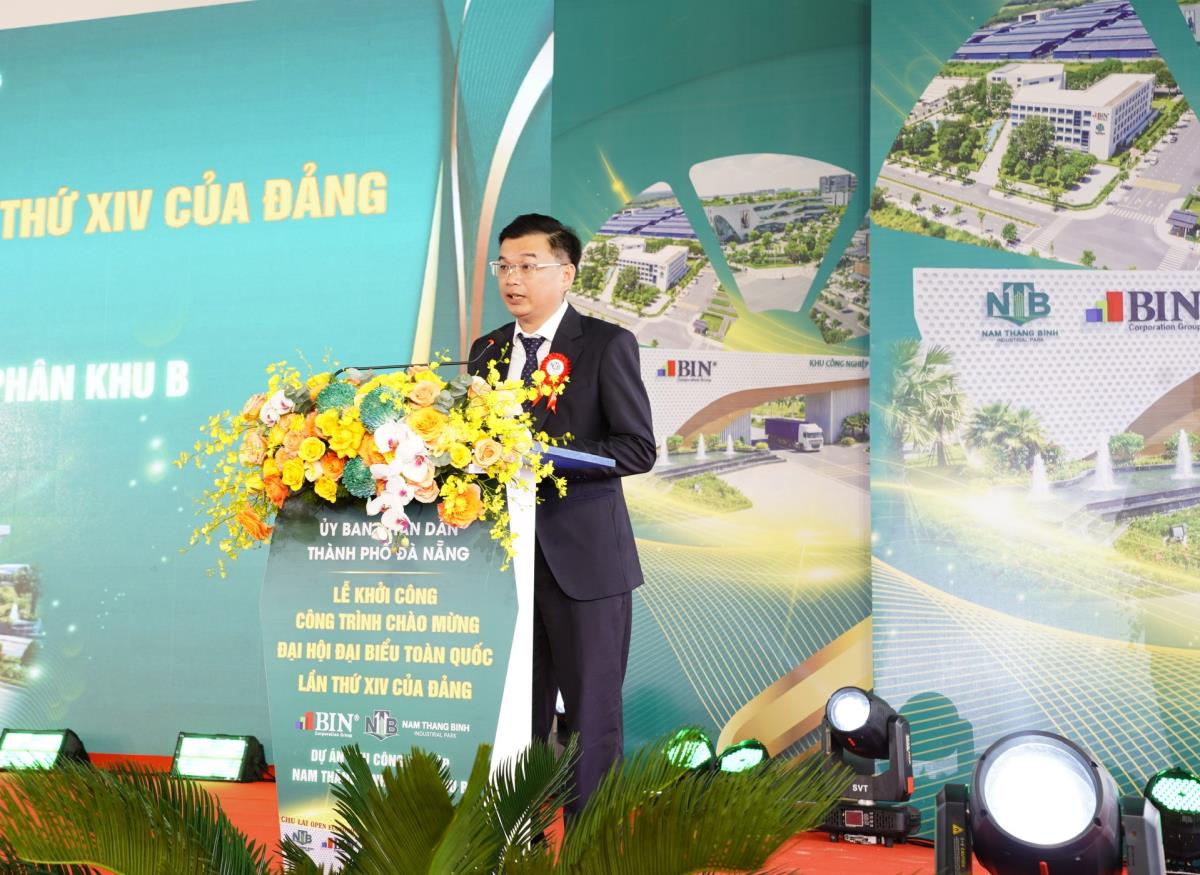Phát biểu tại buổi lễ, ông Lê Hùng Anh - Chủ tịch Tập đoàn BIN Corporation nhấn mạnh, đây không chỉ là một sự kiện khởi công thông thường, mà là một dấu mốc rất đặc biệt và đáng trân trọng. Ý nghĩa hơn nữa khi Dự án Phân khu B – Khu công nghiệp Nam Thăng Bình là một trong những dự án trọng điểm của thành phố Đà Nẵng, cùng nhiều dự án lớn trên cả nước được khởi công để chào mừng Đại hội đại biểu toàn quốc lần thứ XIV của Đảng.
