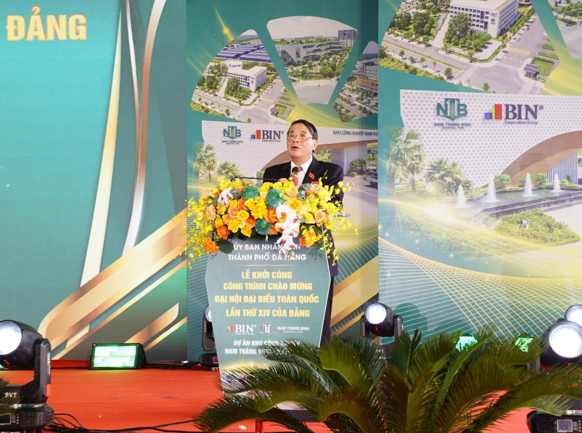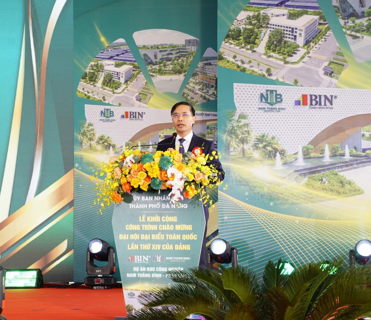 Thay mặt lãnh đạo địa phương phát biểu tại buổi lễ, Chủ tịch UBND TP Đà Nẵng Phạm Đức Ấn ghi nhận, đánh giá cao Công ty Cổ phần đầu tư hạ tầng Khu công nghiệp Nam Thăng Bình đã tin tưởng vào môi trường đầu tư của thành phố, đã khảo sát nghiên cứu và quyết tâm đầu tư triển khai Dự án; biểu dương các Sở, Ban, ngành của thành phố đã nỗ lực, tận tình hỗ trợ giúp đỡ nhà đầu tư, giải quyết kịp thời các khó khăn, vướng mắc, đặc biệt là công tác bồi thường giải phóng mặt bằng để Dự án kịp thời khởi công đúng tiến độ. Và đặc biệt, cảm ơn bà con nhân dân trong vùng Dự án đã đồng thuận, ủng hộ và sớm bàn giao mặt bằng, tạo điều kiện thuận lợi nhất để dự án được triển khai thực hiện theo đúng kế hoạch.