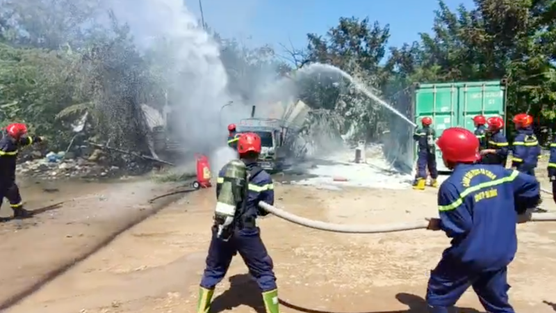 Vụ cháy thiêu rụi 1 xe tải, 1 xe máy, với diện tích khoảng 12m².
