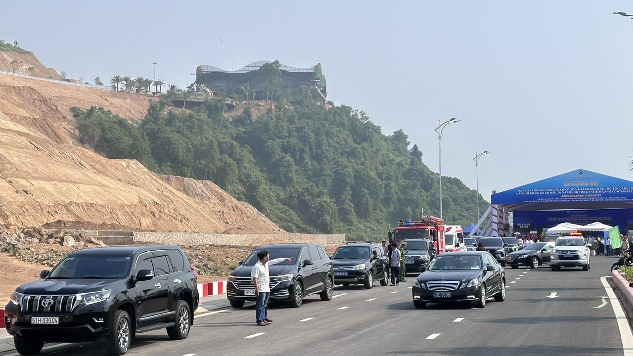 Lễ thông xe kỹ thuật tuyến đường vào cảng. Ảnh: Lê Phi.