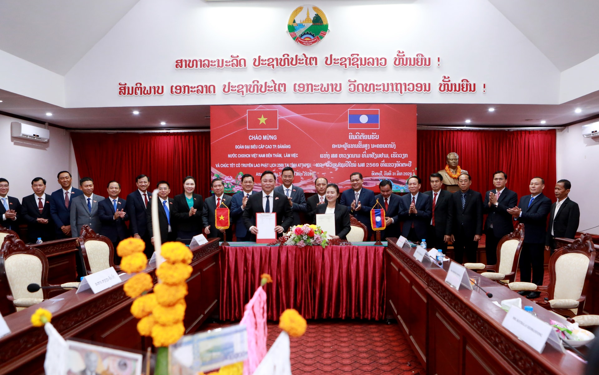Tại cuộc hội đàm, hai bên đã ký kết Bản ghi nhớ hợp tác giữa UBND thành phố Đà Nẵng và Ủy ban Chính quyền tỉnh Attapeu giai đoạn 2026 - 2030; đồng thời ký kết thỏa thuận hợp tác giữa MTTQ hai địa phương giai đoạn 2026 - 2031.