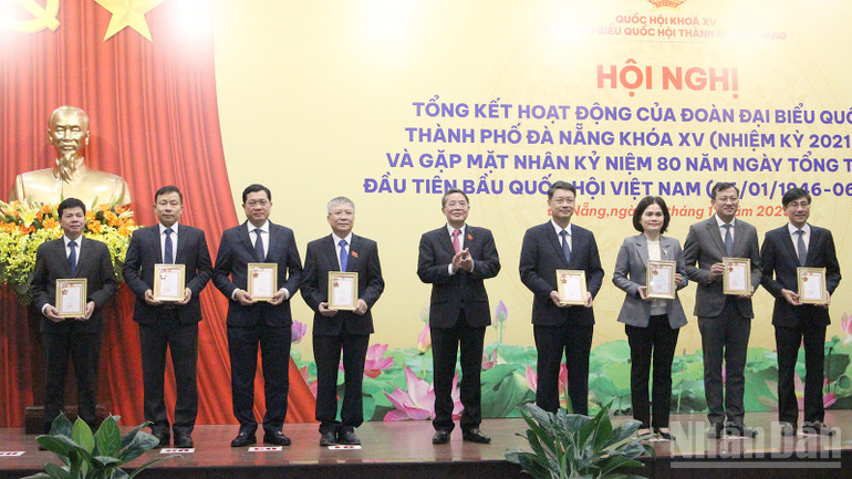 Dịp này, Ủy ban Thường vụ Quốc hội tặng Kỷ niệm chương Vì sự nghiệp Quốc hội Việt Nam cho 27 đồng chí lãnh đạo thành phố Đà Nẵng và 4 công chức, người lao động thuộc Văn phòng Đoàn đại biểu Quốc hội thành phố Đà Nẵng.