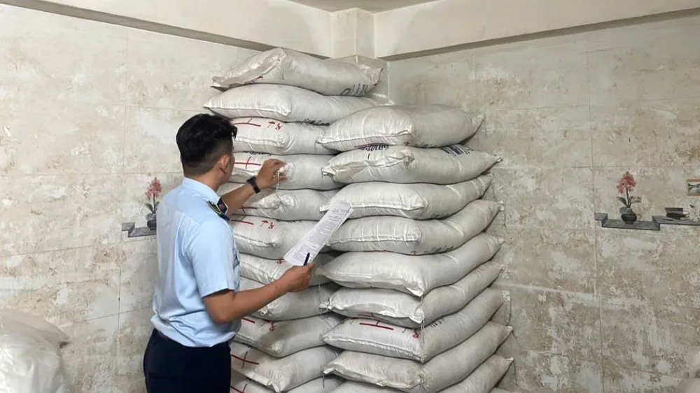 QLTT Đà Nẵng phát hiện nhiều bao tải đường tinh luyện nhập lậu. Ảnh: QLTT