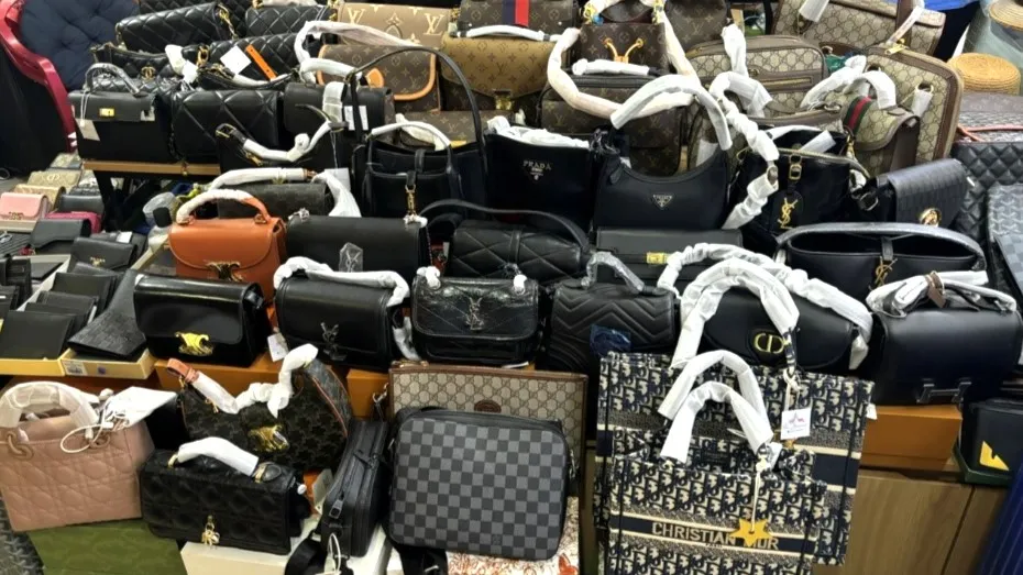 Nhiều túi xách giả mạo thương hiệu nổi tiếng bị phát hiện. Ảnh: QLTT