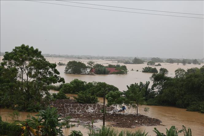 Mưa lớn kéo dài nhiều ngày khiến nước sông suối lên cao. Ảnh: Anh Dũng/TTXVN