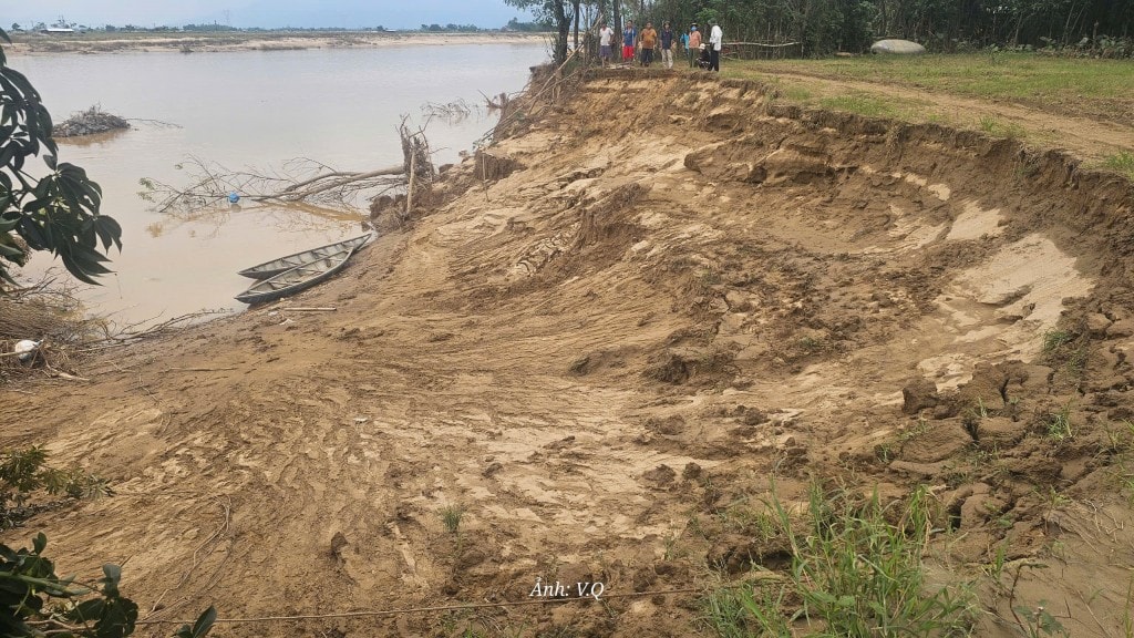 Nhiều khu vực bờ sông Thu Bồn tại xã Điện Bàn Tây (Đà Nẵng) bị sạt lở nghiêm trọng sau đợt mưa lũ do hoàn lưu bão số 13 gây ra hồi cuối tháng 10, đầu tháng 11 vừa qua, nay lại sắp có đợt lũ mới. Ảnh: V.Khánh.