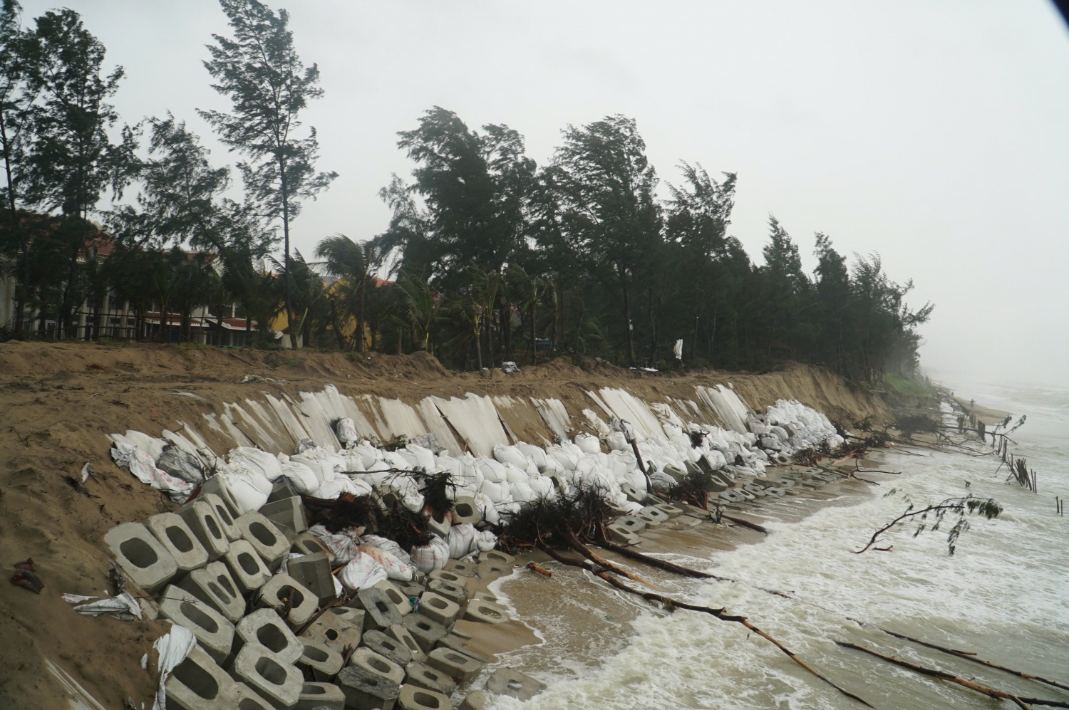 Bờ biển phương Hội An Tây bị sóng đánh, đục khoét sâu vào bờ.