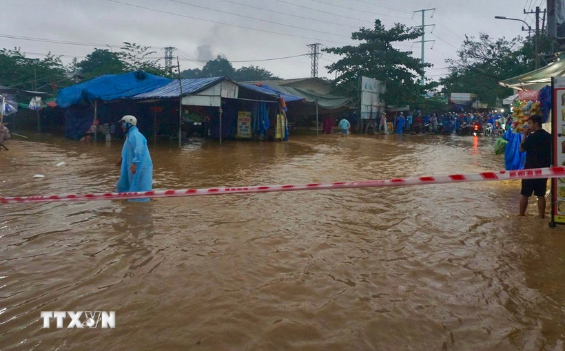 Nhiều tuyến đường bị ngập cục bộ gây ách tắc giao thông tại Đà Nẵng. (Ảnh: TTXVN phát)