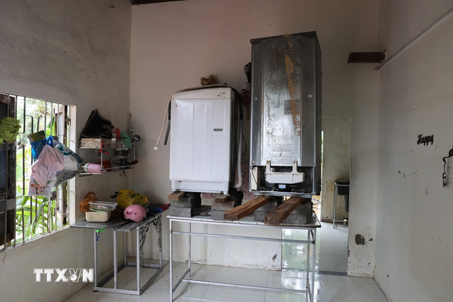 Rút kinh nghiệm từ lần trước, đợt lũ này, mặc dù hết sức mệt mỏi, nhưng cả gia đình ông Kiệt đang dồn hết sức lực để tập trung kê cao tối đa mọi tài sản có giá trị.