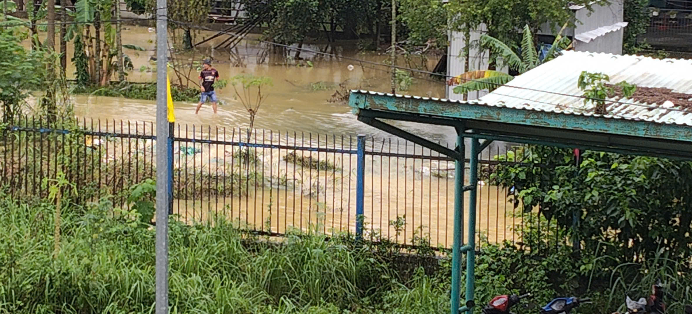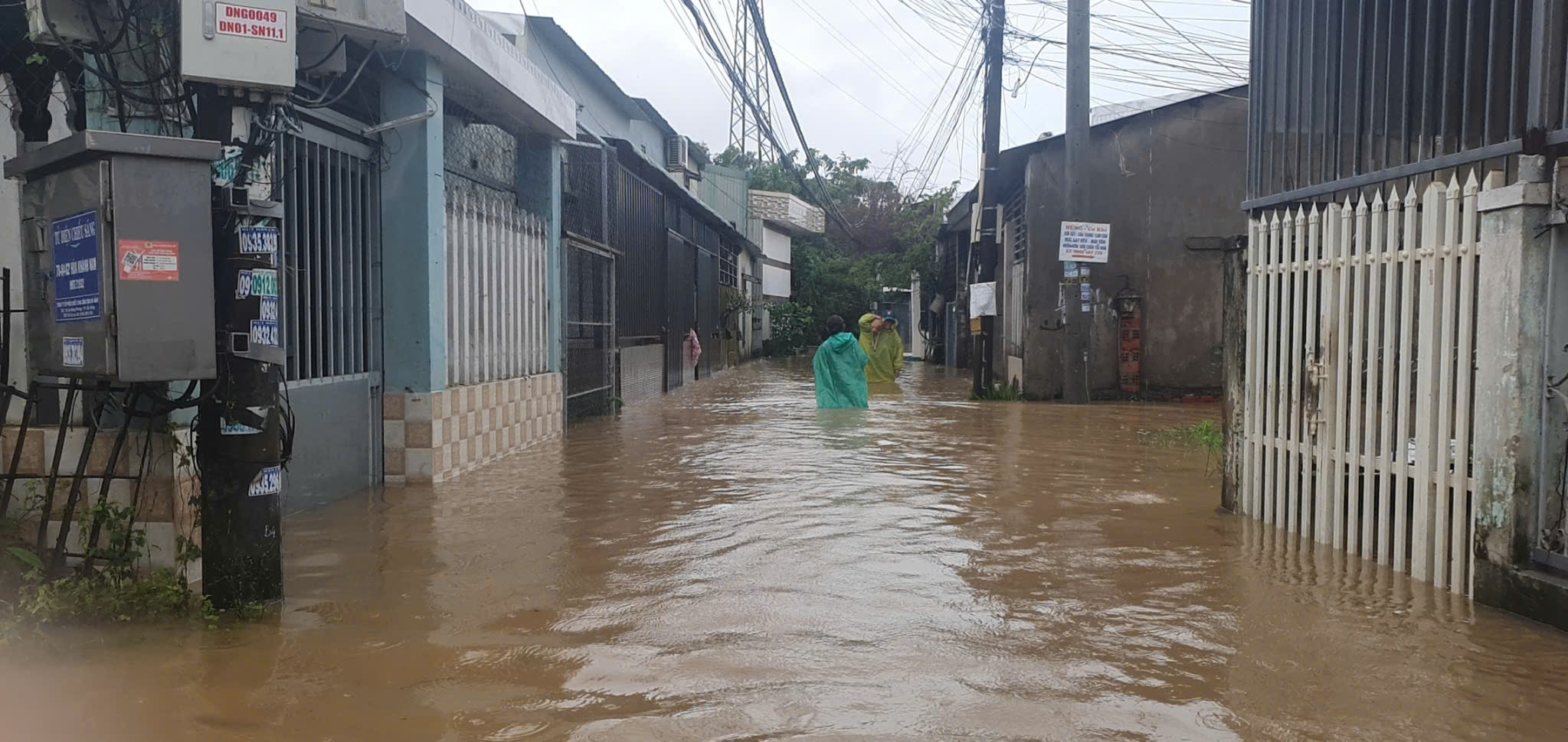 * Mưa lớn suốt đêm khiến nhiều khu dân cư ở phường Hòa Khánh (TP Đà Nẵng) thất thủ, nhiều nhà dân bị ngập sâu.