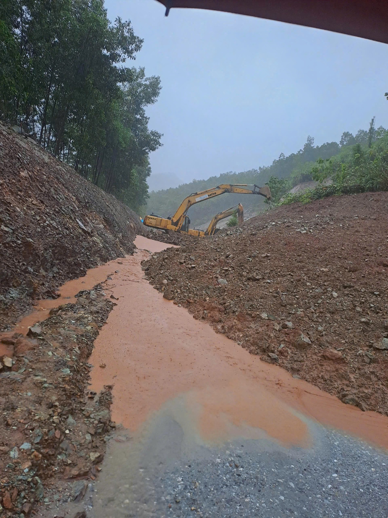 Tại Km84+700 trên QL14E (thuộc xã Hiệp Đức) xảy ra sạt lở đất nghiêm trọng, bùn đất và cây cối tràn xuống mặt đường gây tắc nghẽn hoàn toàn, các phương tiện không thể lưu thông. Khu vực vẫn đang có nguy cơ tiếp tục sạt trượt do mưa lớn kéo dài.
