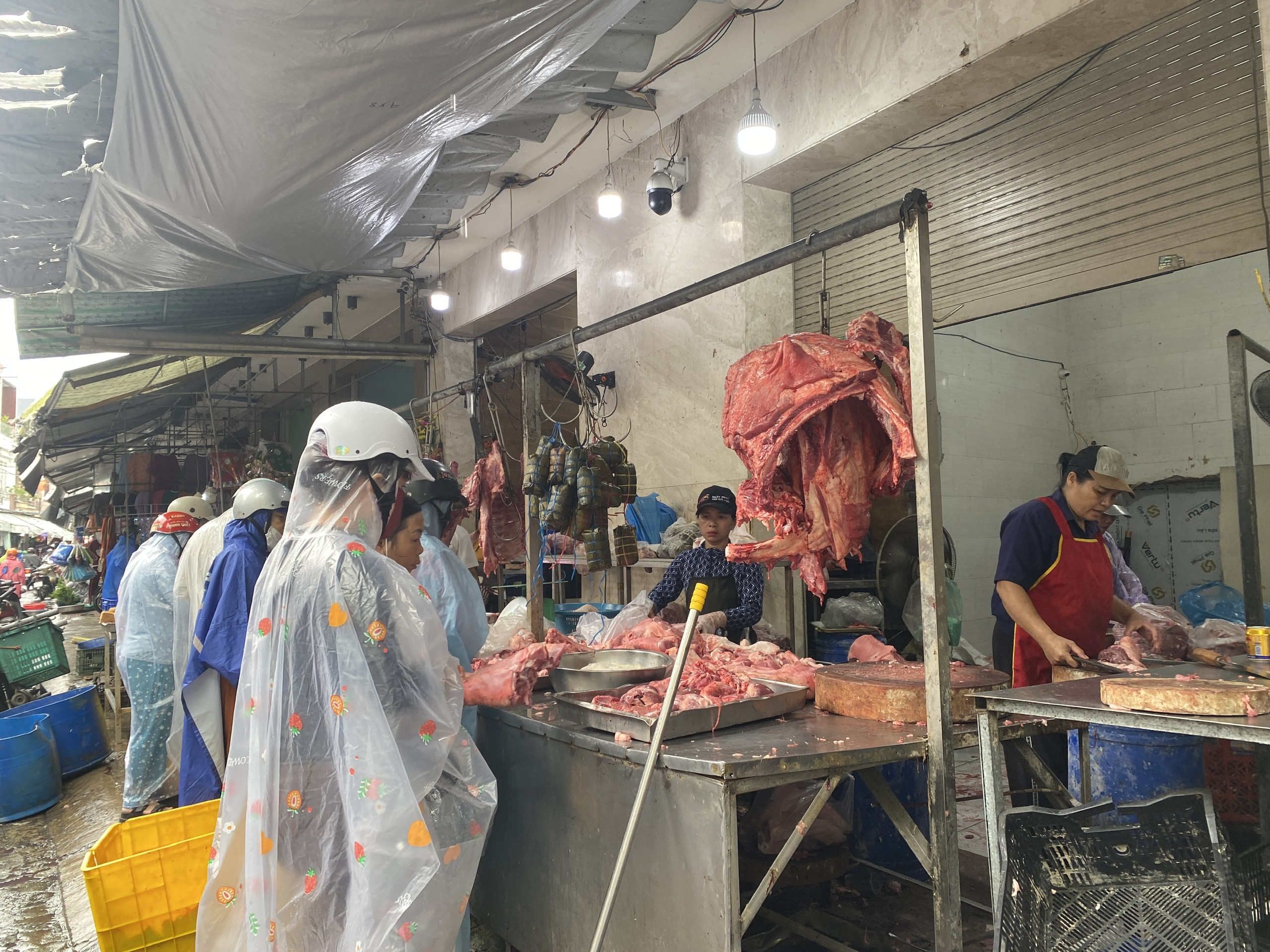 Người dân đổ xô mua thịt tại chợ Thanh Khê 1 trước bão số 12. Ảnh: PHẠM NGA