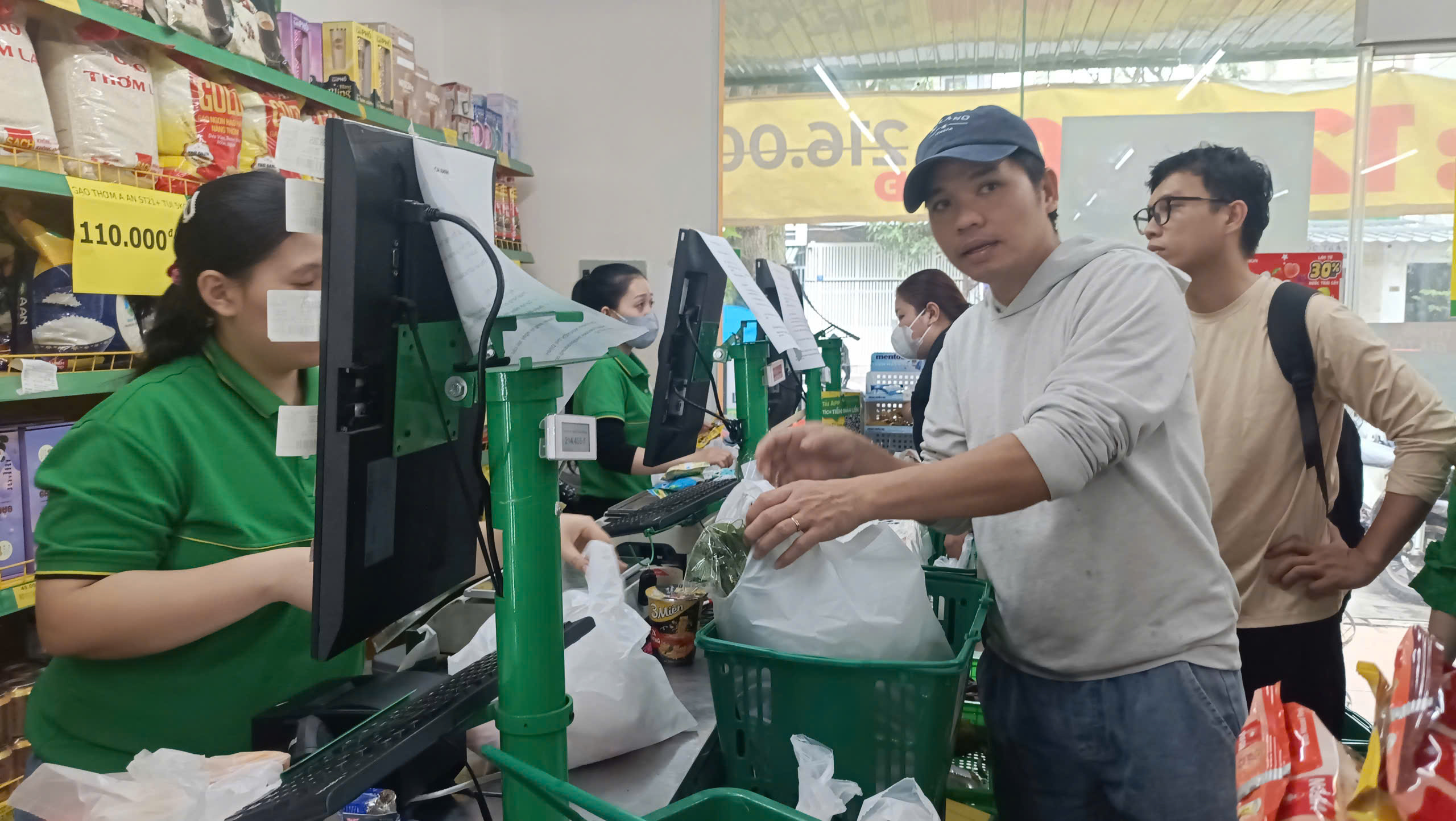 Ghi nhận tại các các quầy hàng lương thực, nhu yếu phẩm luôn trong tình trạng đông đúc. Các mặt hàng được mua chủ yếu như: mì ăn liền, rau củ quả, thịt,.... Ngoài ra, những mặt hàng như đèn pin, bếp gas mini, bao nilon cũng có lượt mua tăng mạnh.
