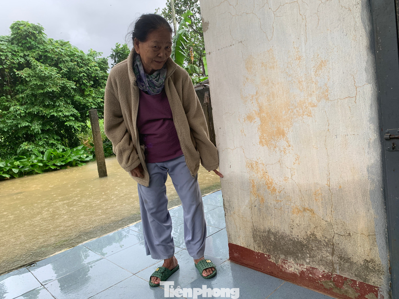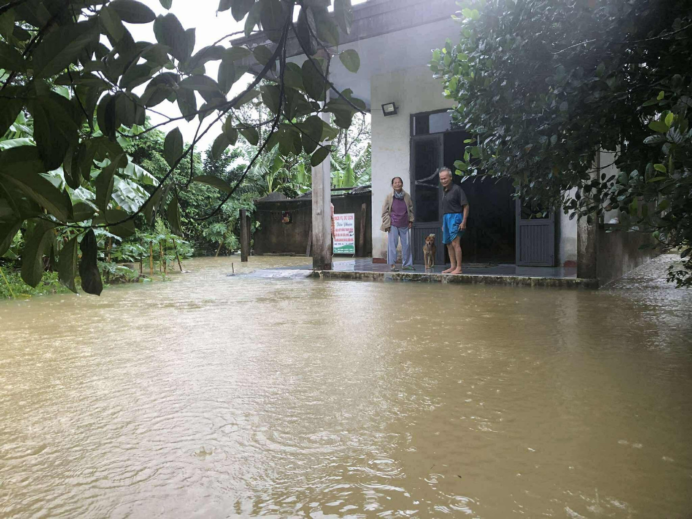 Bà Trần Thị Sự (trú thôn Nam Yên) cho biết, đêm 26/10 nước bất ngờ dâng nhanh tràn vào nhà. “Nước lên tới nền, rồi chỉ một lúc là ngập cả gian giữa, vợ chồng tôi phải leo lên gác tránh, chờ trời sáng mới dám xuống”, bà Sự kể.