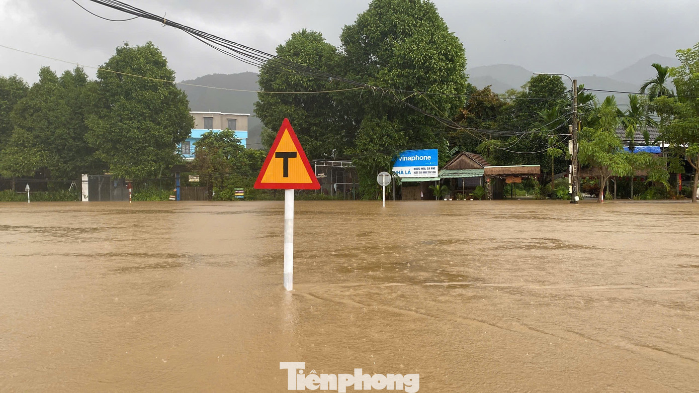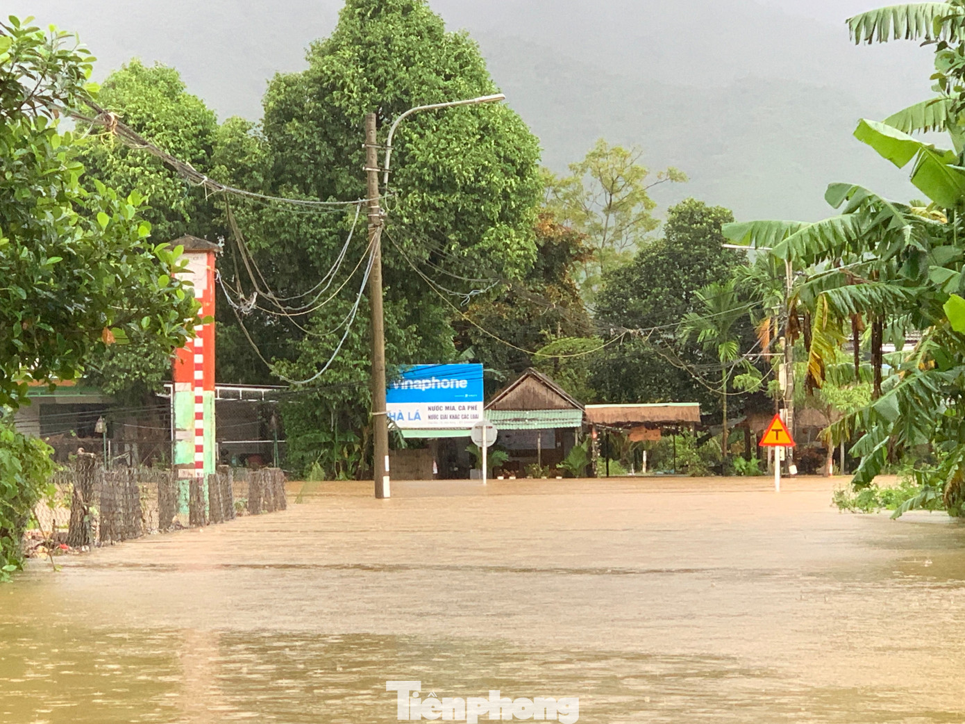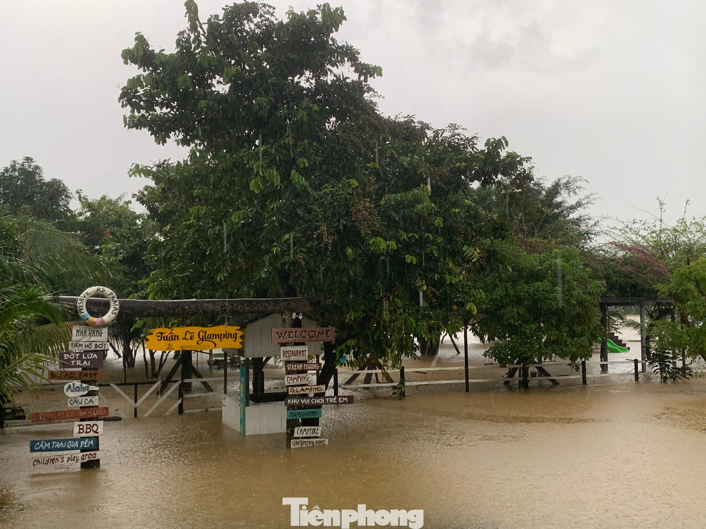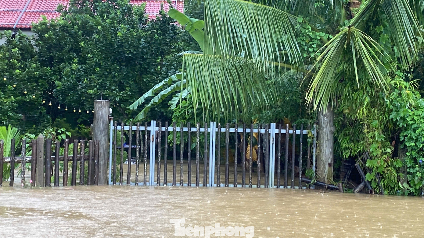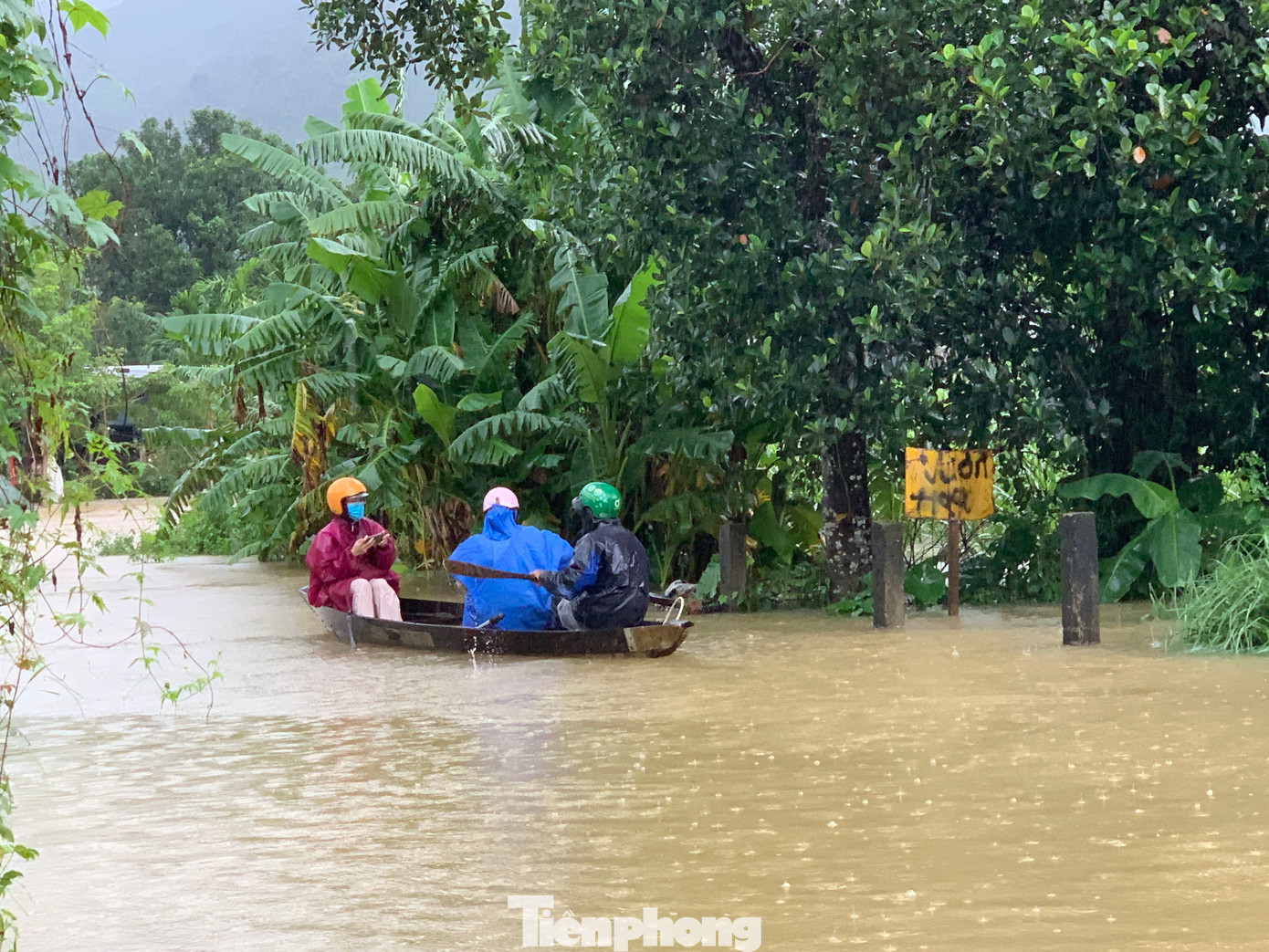 Ghi nhận của Tiền Phong, ngày 27/10, tại thôn Nam Yên (phường Hải Vân) nước ngập sâu hơn 1m tại nhiều vị trí trong thôn. Những con đường bê tông dẫn vào khu dân cư nay chìm trong biển nước. Ảnh: Duy Quốc.